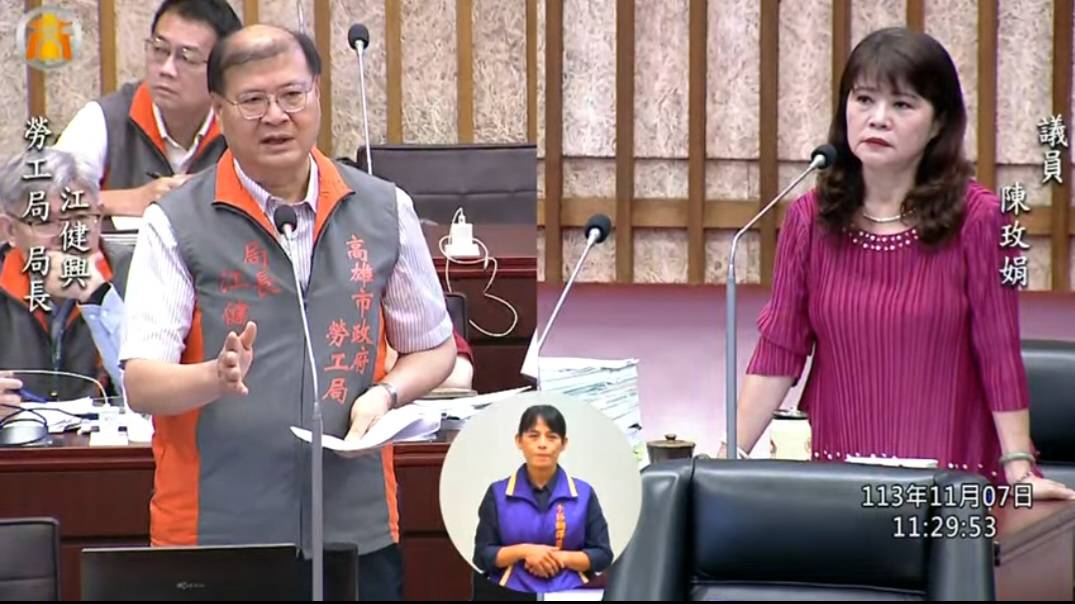 陳玫娟指出,遠見雜誌統計,南部各縣市中以高雄市缺工人數最多,有9萬5665個;台灣面臨少子化、高齡化,加上外送等新產業盛行,因工時彈性吸引大量年輕人,光外送業就約10萬人,嚴重影響國內勞動結構;市府雖大力招商,但觀光旅宿、餐飲服務業仍出現嚴重缺工問題,有關本籍勞工無意願從事的行業(限定工作內容及人數),勞工局可借鏡日本、韓國,向勞動部具體反映引進外籍勞工。勞工局長江健興答覆,會向勞動部確實反映問題。