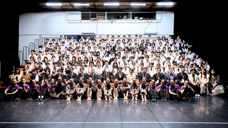 壓軸表演是由左營高中舞蹈班帶來的精彩演出,演出中舞者手持竹竿、頭戴斗笠,伴隨節奏迅速移動,舞姿剛健優美,將觀眾帶入武俠般的情境,充分展現台灣傳統文化的力與美。光影交錯間,舞者如同穿梭於黑暗中的影子與戰士,這場表演不僅展現了台灣舞蹈的獨特魅力,也讓日方師生深刻體會到台灣文化的深邃意境。