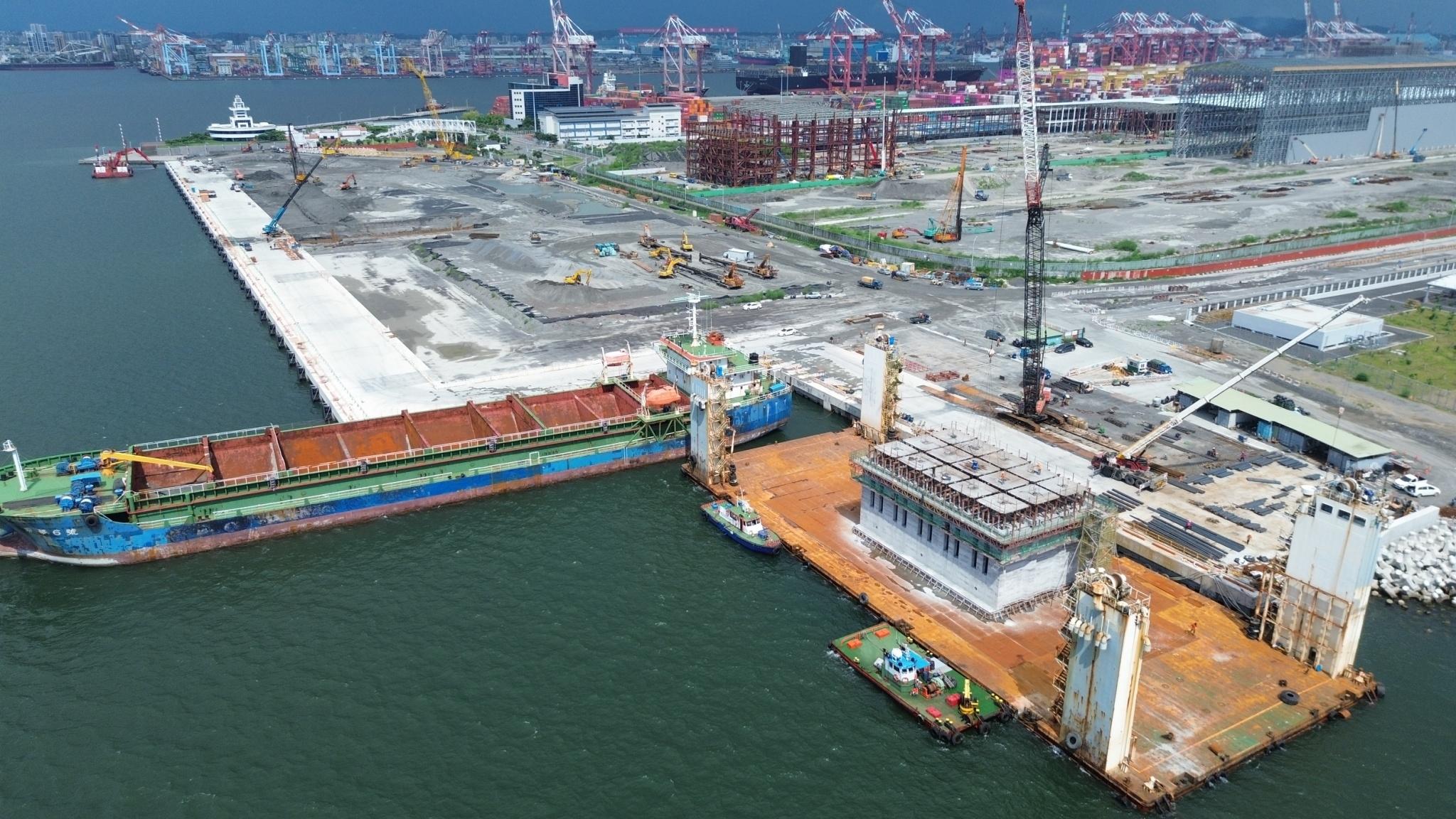 圖2、「臺北港南碼頭C填區公共設施及永久護岸暨S04~S05碼頭工程」空拍圖。(臺灣港務公司提供)