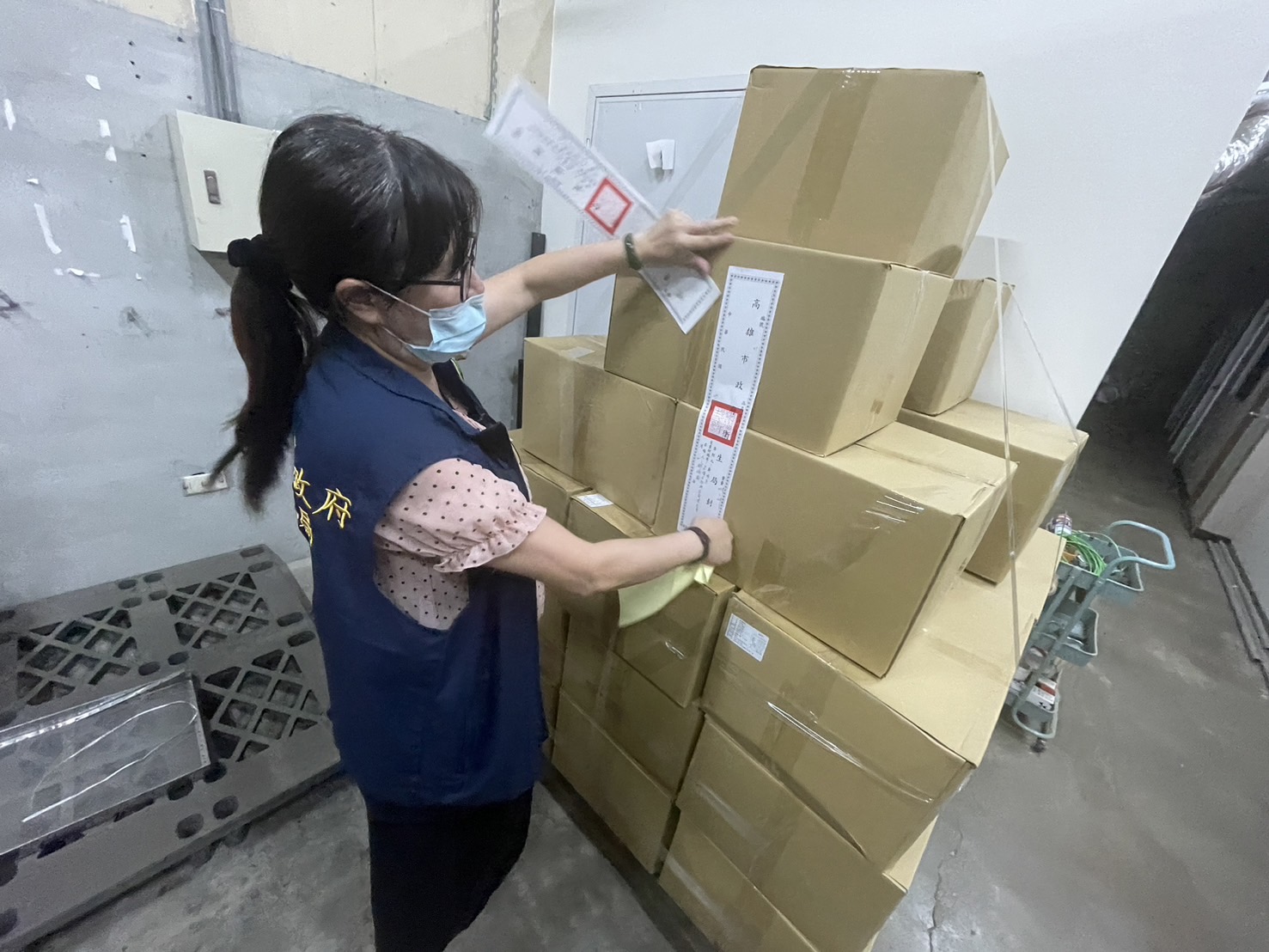 衛生局人員現場封存產品及原料情形。(高雄市政府衛生局提供)