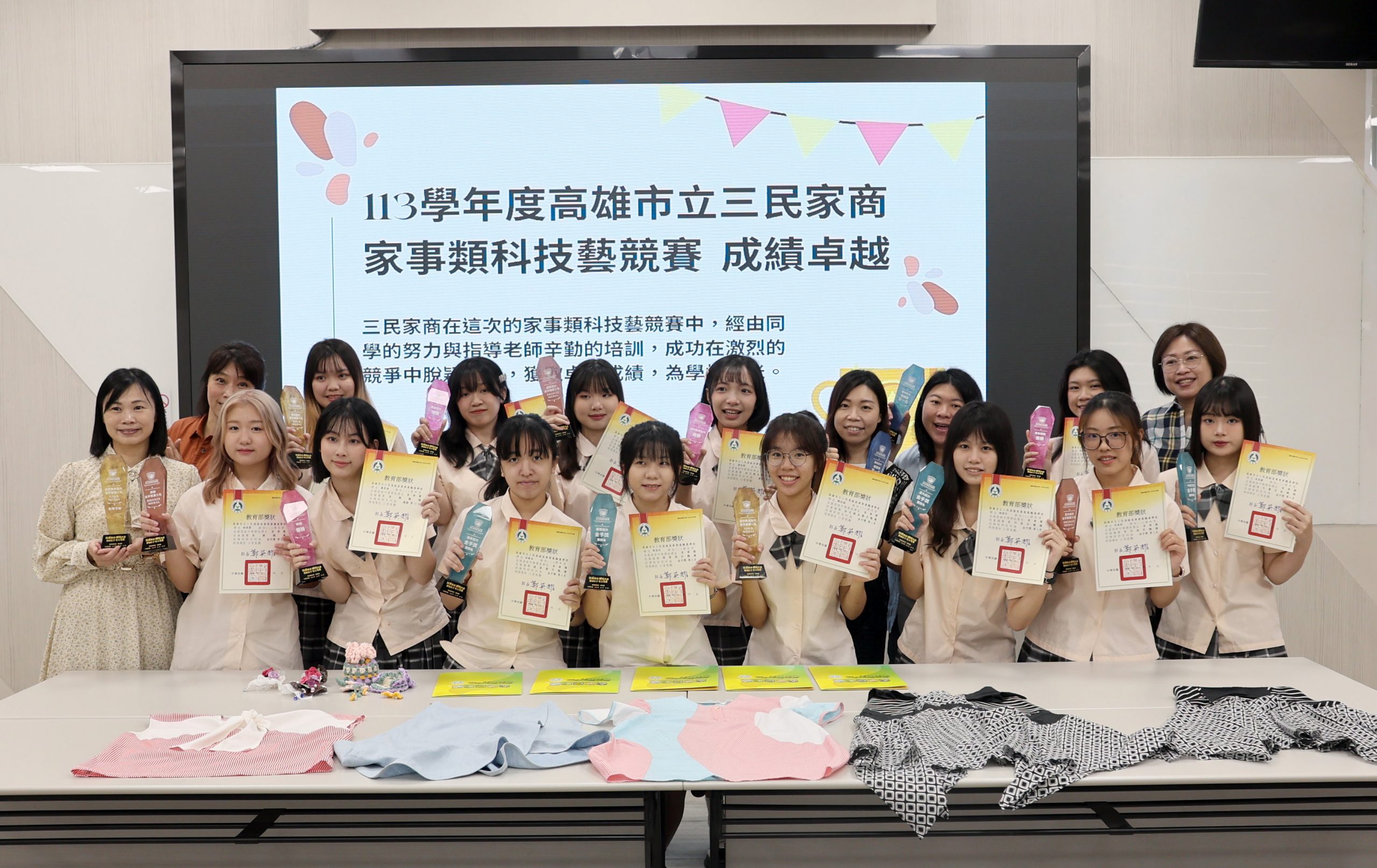 13年全國高中學生家事類技藝競賽,三民家商表現亮眼,榮獲9金手獎、4優勝,多項團體第一優異成績。(記者翻攝)
