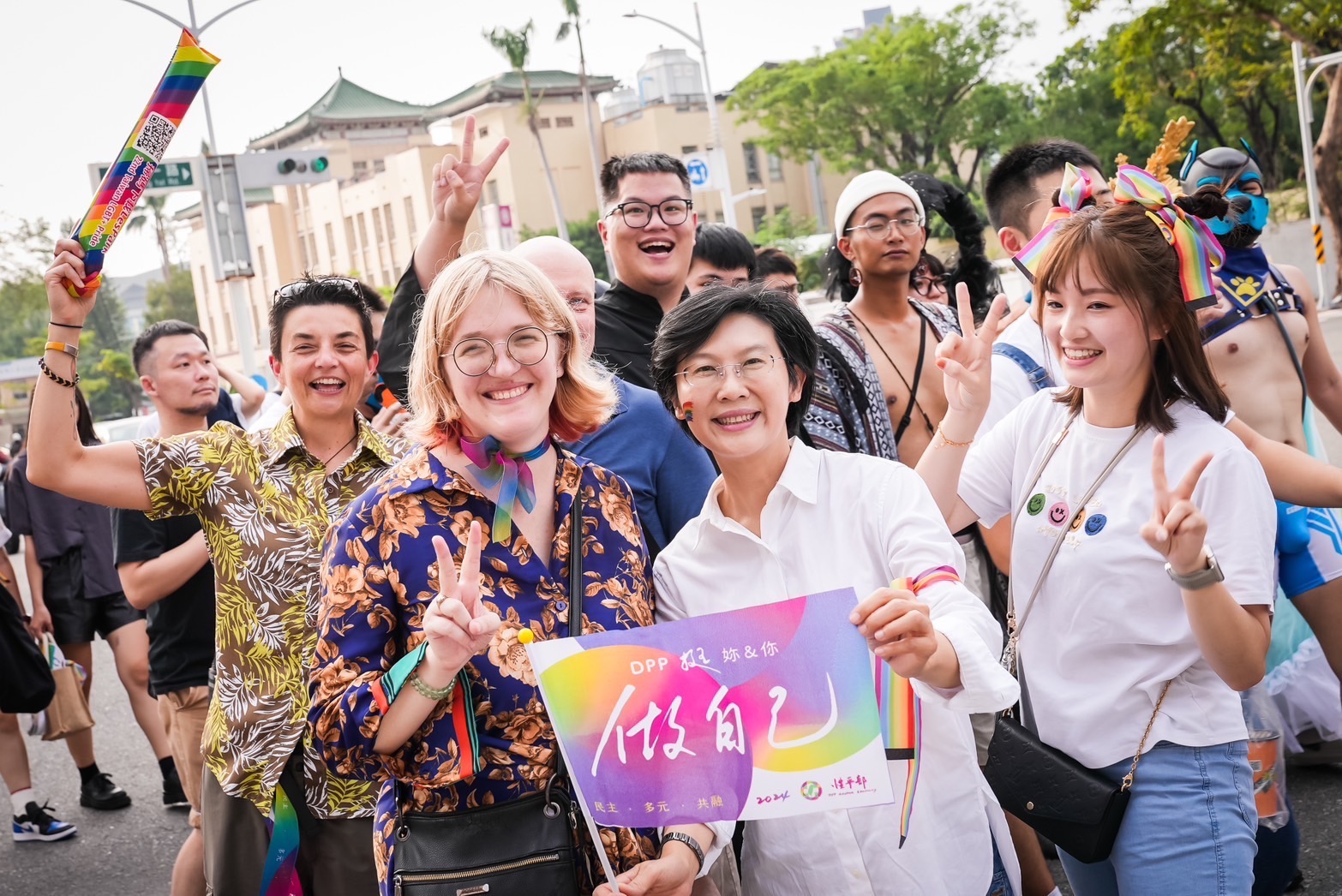 (記者謝富益高雄報導)2024高雄同志大遊行於今日舉辦,立委林岱樺加入活動行列,以行動表達對同志權益的支持,並與市民一同響應主辦單位「邁向共融」的訴求。不少民眾發現林岱樺參與遊行,也以比讚表達鼓勵。