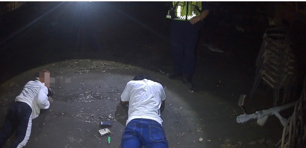 新興分局自強路派出所巡邏警組日前接獲報案,稱有兩名可疑男子於深夜進入工地內形跡可疑,經警方到場入內梭巡,機敏發覺躲藏於頂樓水塔後方想逃避警方查緝的兩名可疑男子,最終仍逃不過警方法眼,於現場查獲所持有之毒品與吸食器,依規定逮捕帶返所偵辦。