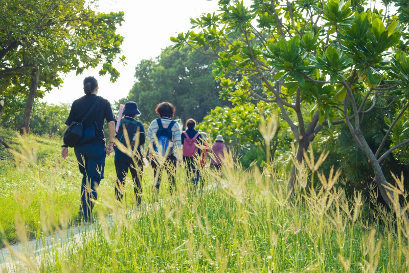 完整步道及座椅,使同盟公園成為散步健行的好去處。(高雄市政府工務局提供)