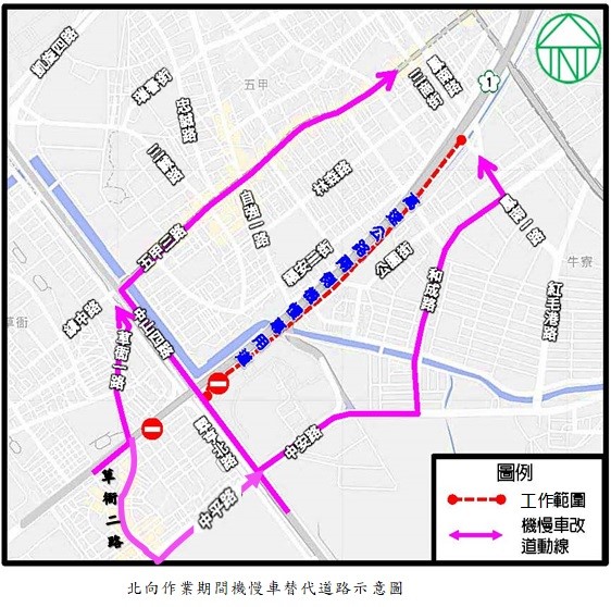 北向作業期間機慢車替代道路示意圖。(高市府環保局提供)
