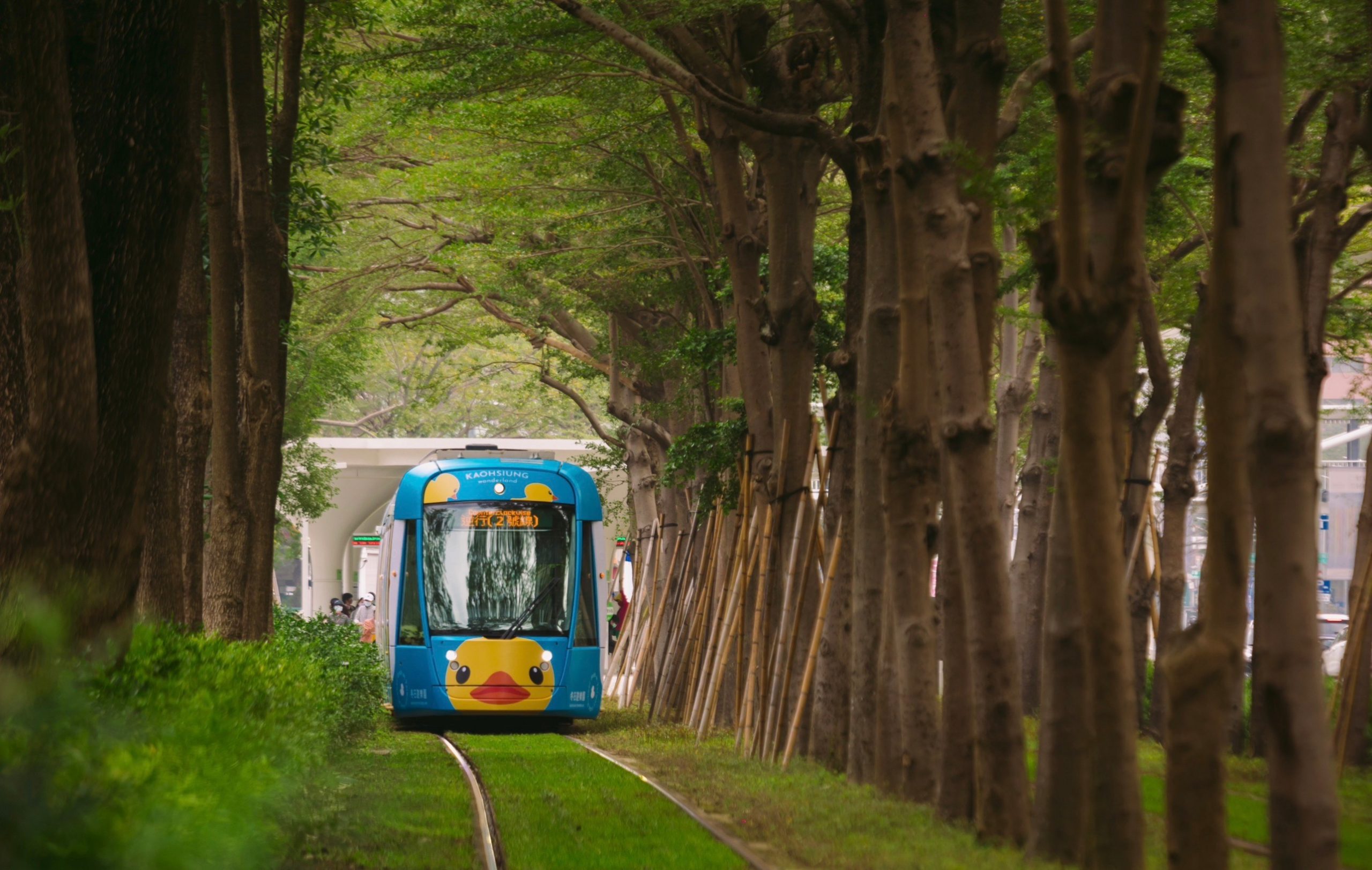 捷運局吳嘉昌局長表示,高雄輕軌為全國第一條輕軌運輸建設,全線採無架空線系統,保留高雄城市空間完整天際線,同時採以站就樹原地保留雨豆樹等樹木,營造美術館「龍貓隧道」及大順路「綠巨人隧道」城市美景,使沿線綠蔭交織的氛圍,成為城市間裡少見的綠色隧道,創造高雄美麗的獨特城市移動新美學。