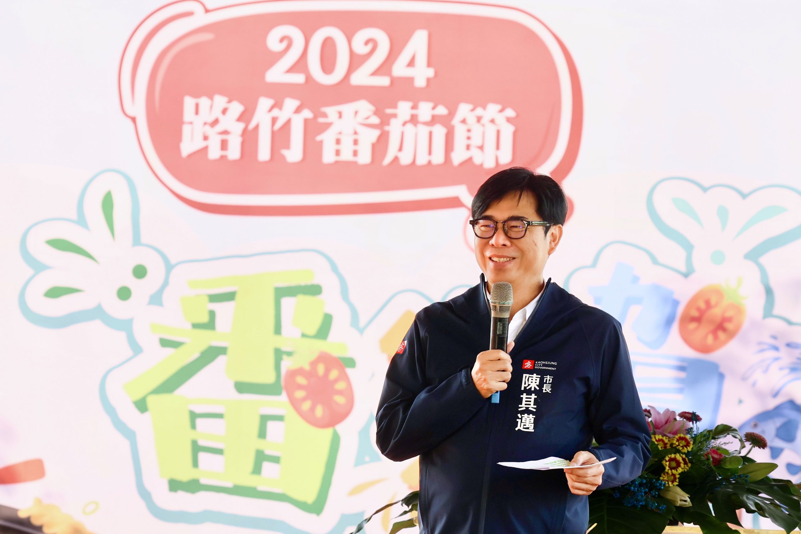 2024路竹番茄節今(7)、明兩日在路竹體育園區熱鬧登場,高雄市長陳其邁出席活動,大力行銷農產。他表示,路竹物產豐富,擁有番茄、雞蛋、虱目魚及花椰菜等「路竹四寶」。其中番茄受日前颱風影響,產量僅剩約4成,感謝立委協助爭取農產災害補助,也請民眾把握機會品嘗汁多味美的路竹小番茄。