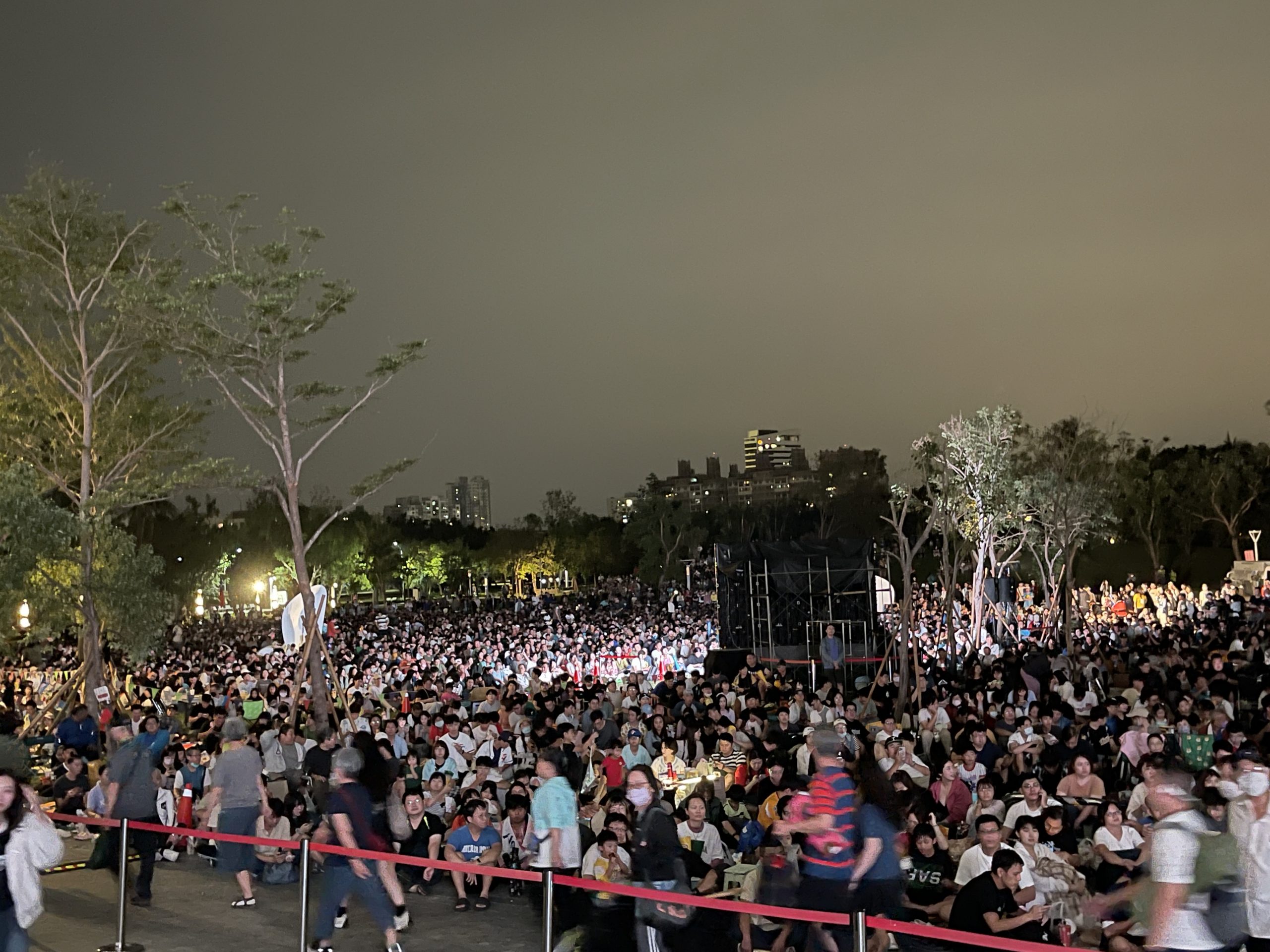 運發局日前辦理12強轉播賽事吸引上萬名市民朋友至衛武營應援。(運發局提供)