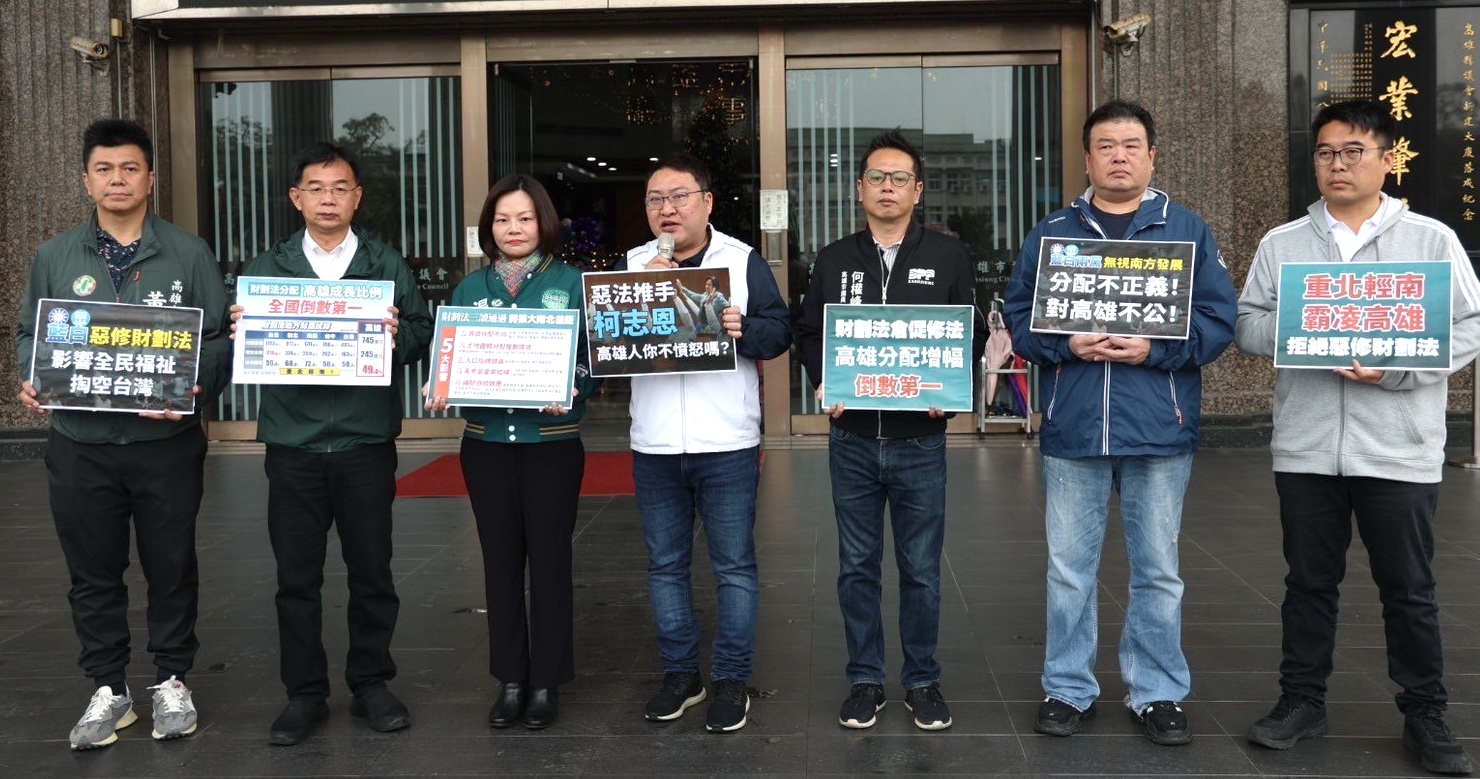【記者蘇武智/高雄報導】立法院20日三讀通過《財政收支劃分法》修正案,高雄市所分配增加比例將成全國倒數第一,淪為受害者。高市議員簡煥宗、邱俊憲、張勝富、何權峰、湯詠瑜、黃彥毓、黃文志、郭建盟,今(23日)嚴厲譴責此次修法的不公及藍、白的惡劣操作,怒批「重北輕南、霸凌高雄,拒絕惡修財劃法」,並對國民黨籍立委柯志恩公開支持此法案表達強烈不滿,直指其行為已嚴重損害高雄未來發展。