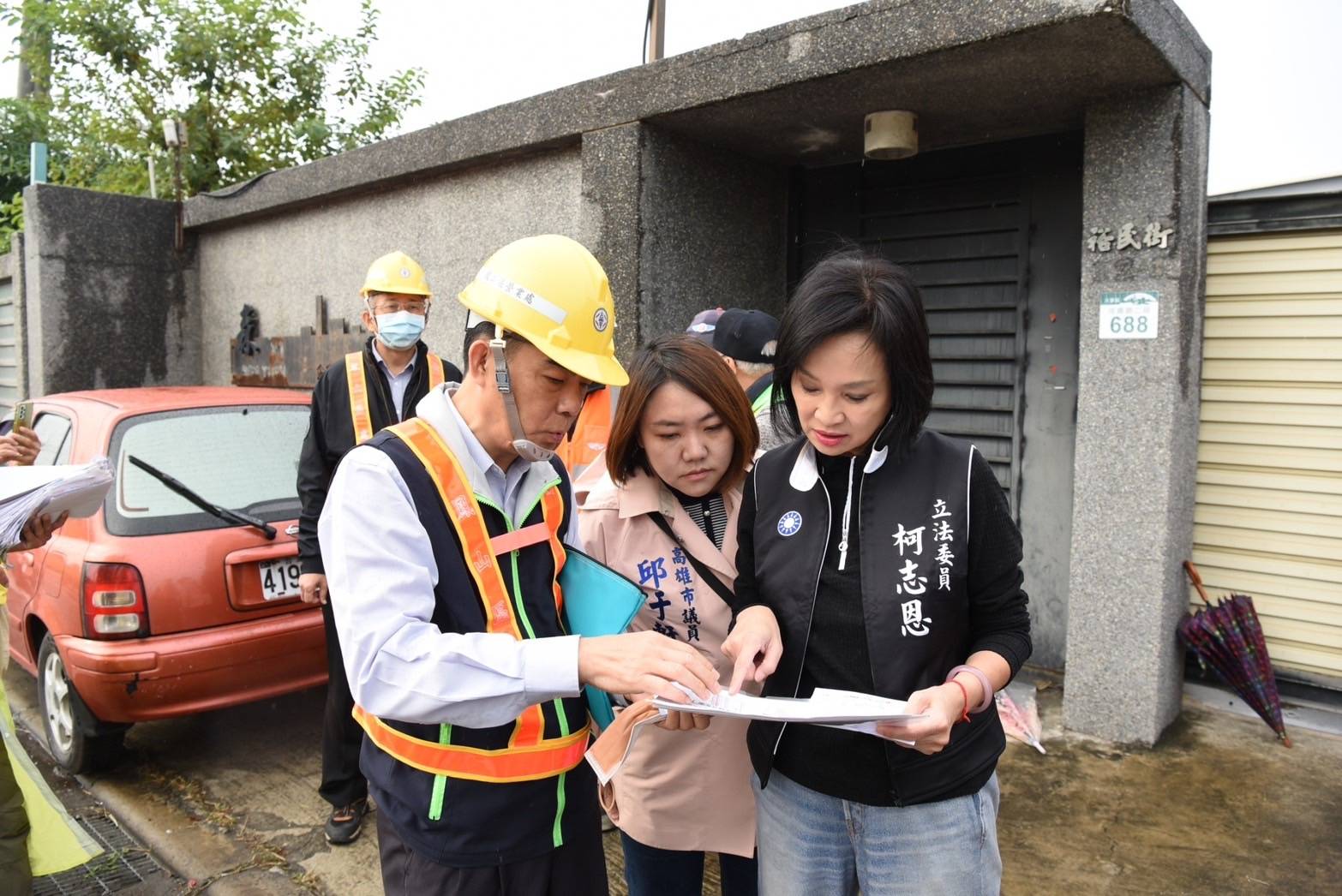 柯志恩會勘關心電纜地下化進度。(記者翻攝)