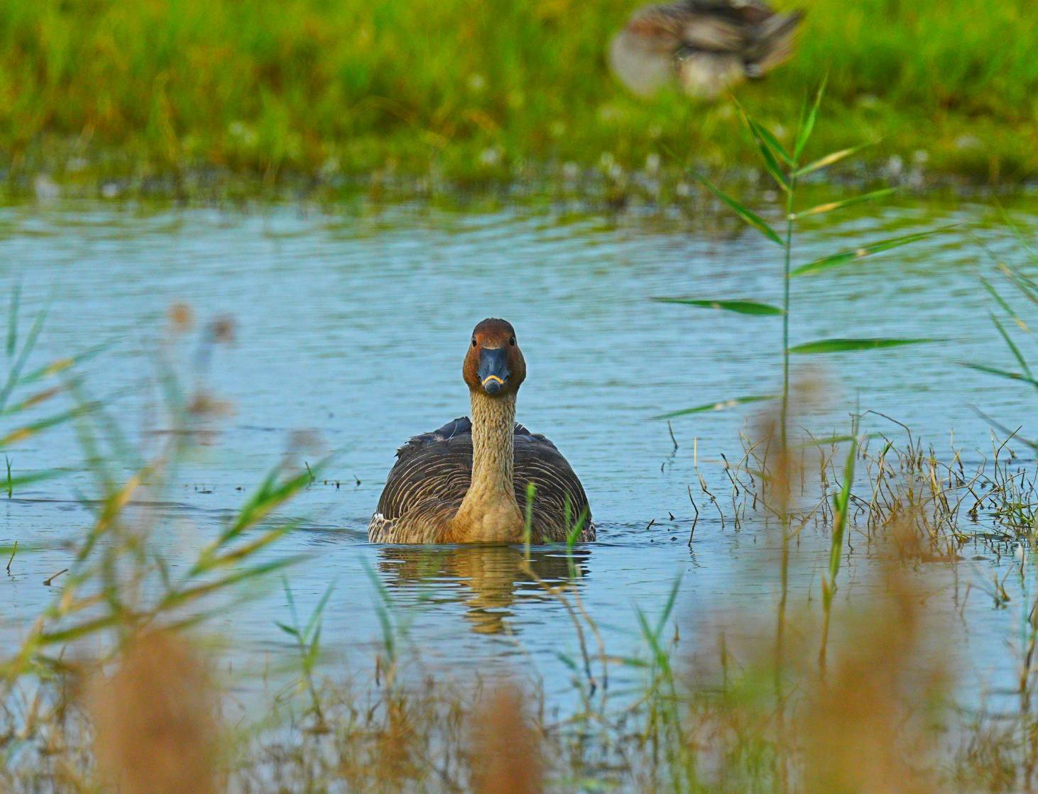 (記者葛志琪高雄報導)台灣稀有冬候鳥「白秋沙」再度現蹤高雄茄萣濕地!雌鳥頭上及後頸栗褐色,眼先有黑斑,背面灰褐色,吸引不少鳥友聚集拍攝及觀賞棲息情形。工務局局長楊欽富表示,茄萣濕地鳥況紀錄不斷進步,顯現市府投入茄萣濕地保育生態成功。再度到訪的「白秋沙」及「寒林豆雁」,讓人感受茄萣濕地魅力無窮,也讓鳥迷們更期待下一波「嬌客」的到來。