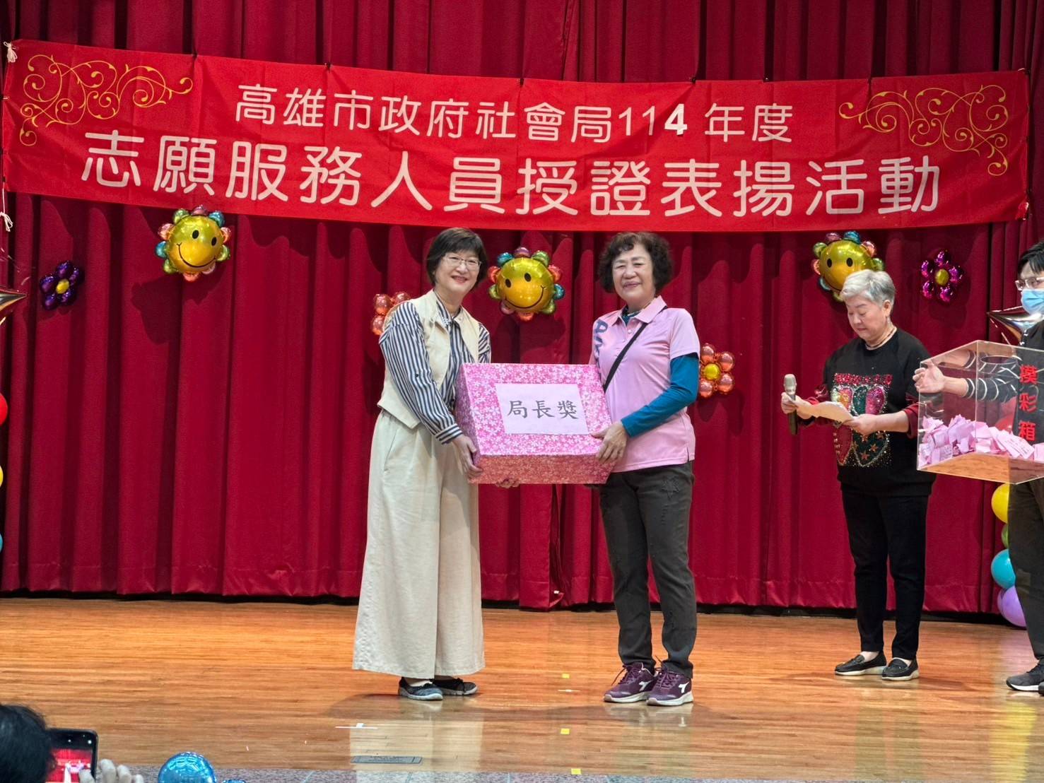 (記者洪添處高雄報導)高雄市政府社會局今(4)日在鳳山行政中心大禮堂舉辦114年志願服務人員授證表揚典禮。社會局葉玉如副局長親自頒發志工受聘證書,感謝志工夥伴們長期以來熱心助人,並特別頒發「志工服務35年榮譽獎」給洪玉芳、林正琴、李苑平、林全錄、陳惠理、劉麗華等志工,表彰他們長期不懈的貢獻與努力。