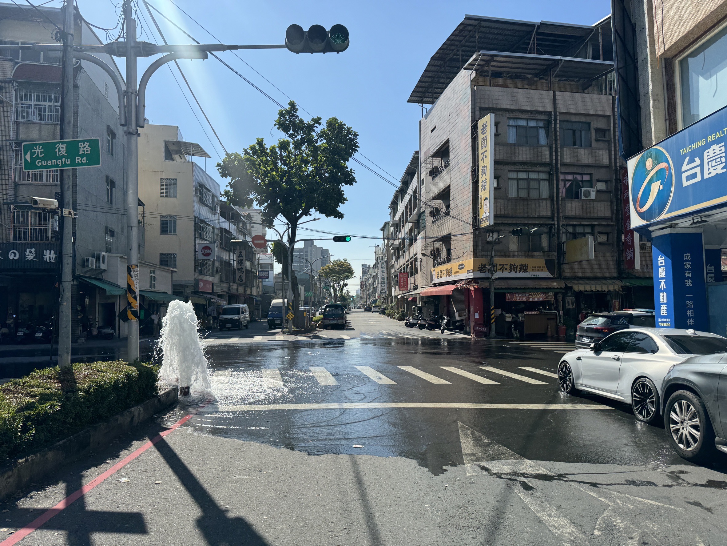 現場無人受傷、駕駛無酒精反應,員警立即交通疏導並通知消防隊前來檢視、自來水公司到達,於12時許員警俟現場狀況排除後始離去,全案測繪後送往交大進行判定。