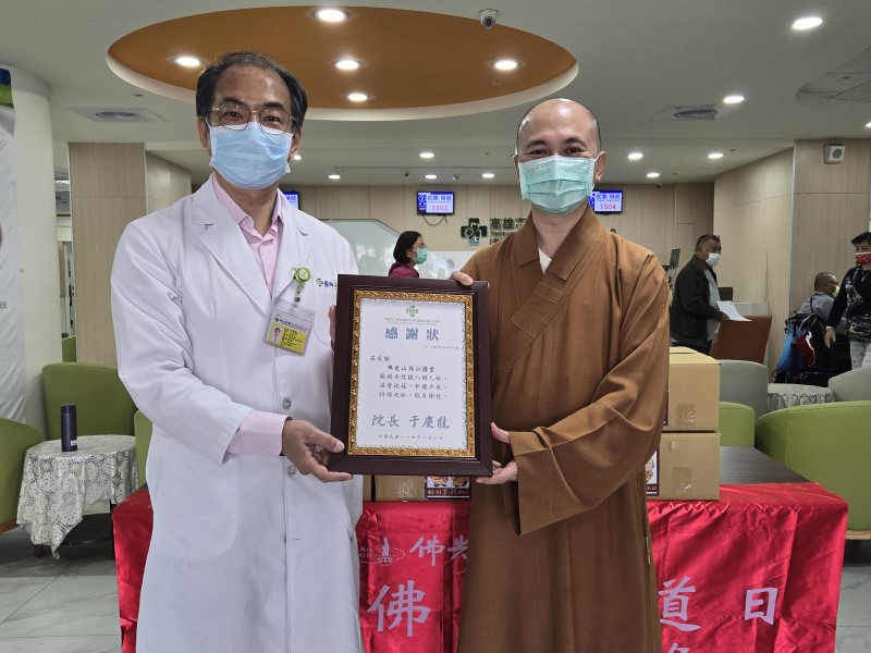 佛光山岡山講堂致贈岡山醫院臘八粥。(記者翻攝)