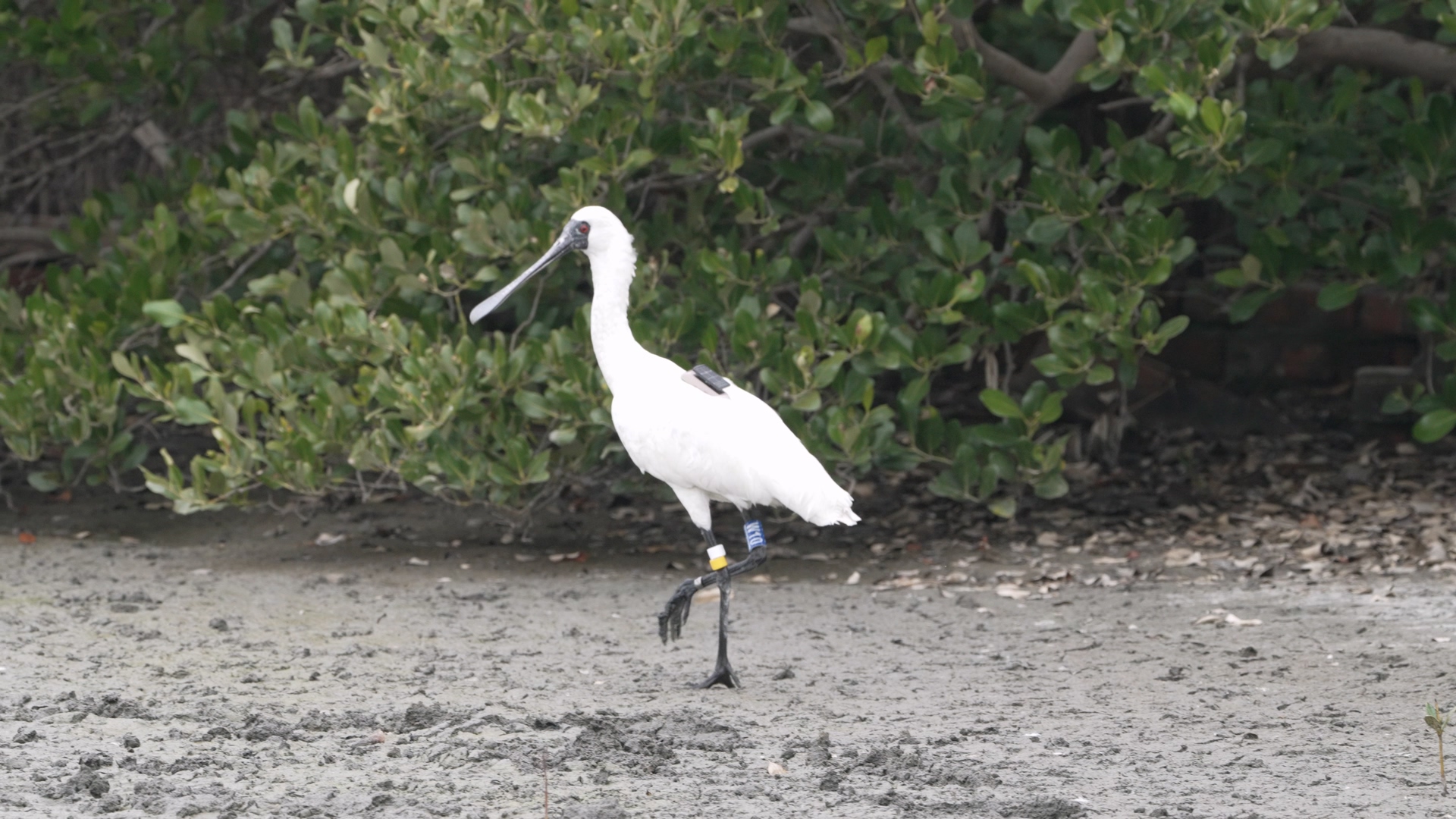 興達電廠於永安溼地野放日前救援的黑面琵鷺興達一號。(台電提供)