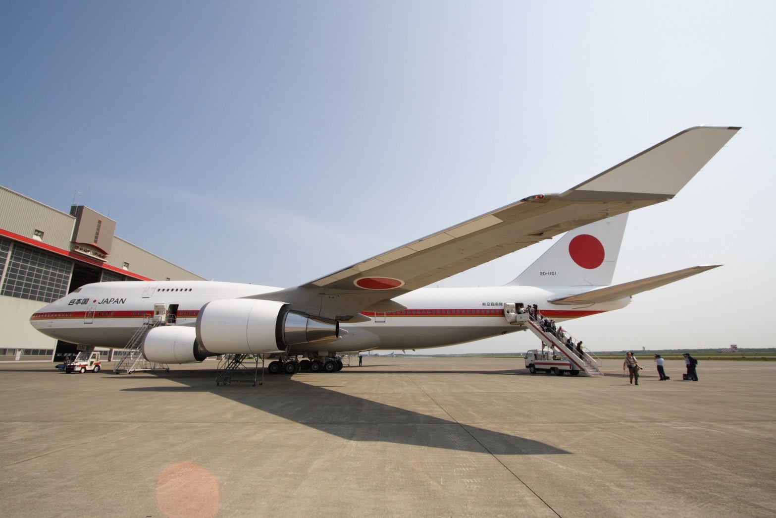 俗稱〝日本空軍一號〞的政府專機,是隸屬於日本航空自衛隊(JASDF)旗下的政府專用機航空支援集團(Special Airlift Group),該集團下轄4個空運單位,包括3個輸送航空隊及1個特別航空輸送隊,另外在本部還有航空支援集團司令部、航空氣象群和飛行點檢隊;其中3個輸送航空隊是航空自衛隊的空運主力;至於政府專機則是在80年代後期,由當時的總理府決定引進,經過檢討評估後,在1987年5月28日選定跟美國空軍一號(VC-25A Air Force 1)同型的波音747巨無霸(Jumbo)客機,當時引進的機型是被稱為〝高科技巨無霸〞(High-Tech Jumbo)的最新型B747-400型,而採購單位雖然是總理府,但實際運用單位是航空自衛隊,到了1992年4月1日,政府專機正式移交至航空自衛隊管理,重編序號為20-1101及20-1102,目前航空自衛隊制式名稱為B747;1992年4月10日,空自在航空支援集團轄下新設〝臨時特別航空輸送隊〞,直到1993年6月1日,才於航空自衛隊駐防北海道的千歲(Chitose)基地內,正式編成特別航空輸送隊,下轄第701飛行隊與整備隊;截至目前為止,2015年(平成27年)日本的空軍一號已飛行近300回任務,其中包括2004年及2010年間,從伊拉克及海地載運自衛隊隊員進行聯合國和平任務,但空軍一號的主要任務仍以搭載政府高層官員、首相和皇室成員出國訪問為主,而2018年8月(平成30年) 航空自衛隊開始受領777-300ER的1號機,2018年12月(平成30年) 航空自衛隊開始受領777-300ER的2號機,2019年3月(平成31年) B747-400型退役,2019年4月開始在日本航空自衛隊(JASDF)正式服役。