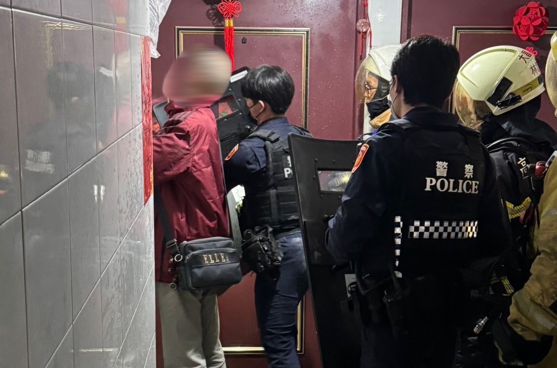 員警迅即進入屋內將翁嫌壓制管束。(高雄市政府警察局三民第二分局提供)