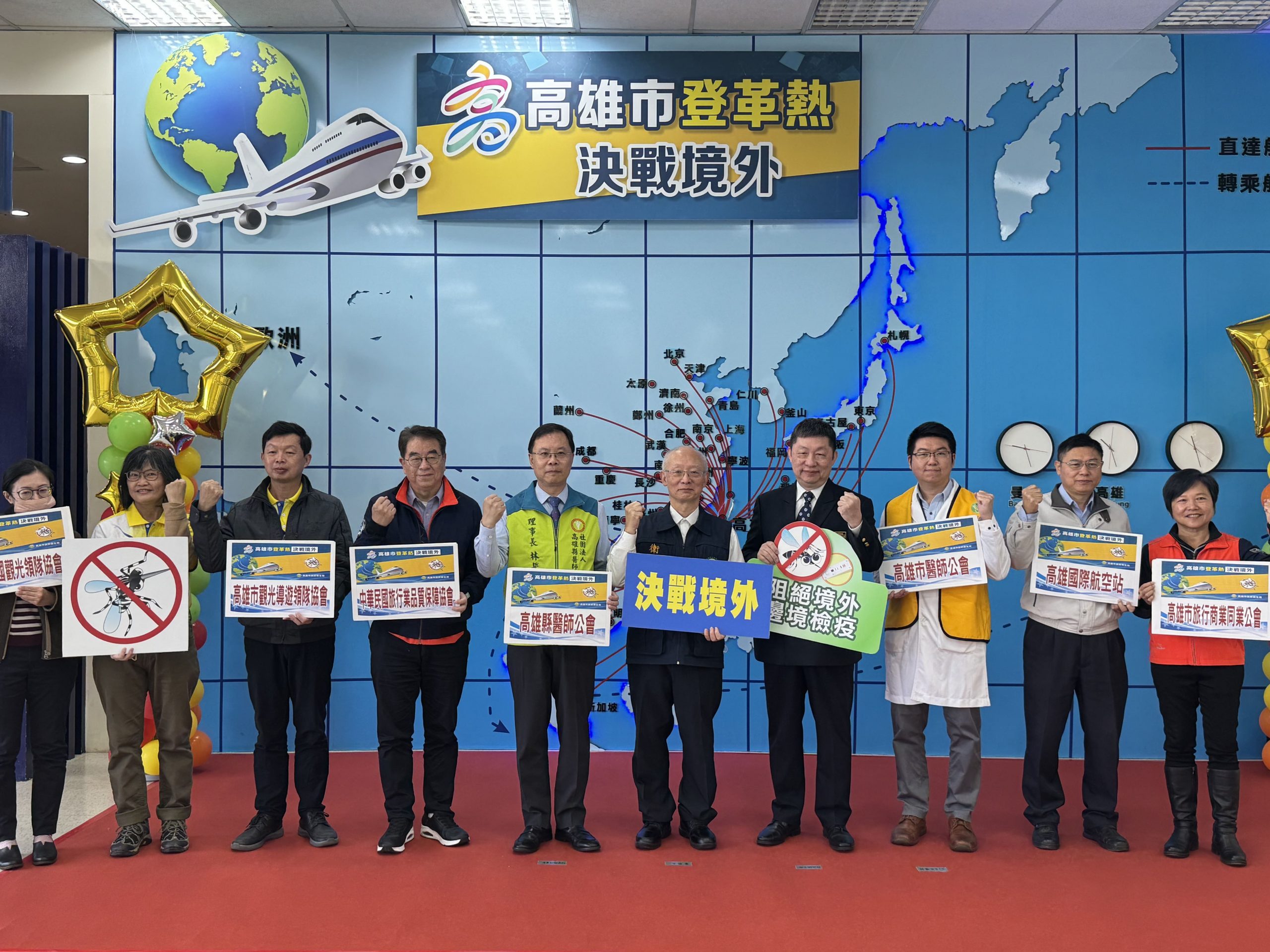 高市衛生局今(18)日假高雄國際航空站辦理「114年高雄市登革熱決戰境外記者會」,活動當日邀請中央疾病管制署、高雄市觀光、旅行、導遊、領隊等公會代表、醫院及公衛防疫夥伴共襄盛舉。透過記者會說明民眾及旅行團從機場入境至返國後的防疫行動策略,以增進自登革熱高流行地區入境民眾能主動通報、接受篩檢、提早就醫自主健康管理意識,降低疫情發生風險。