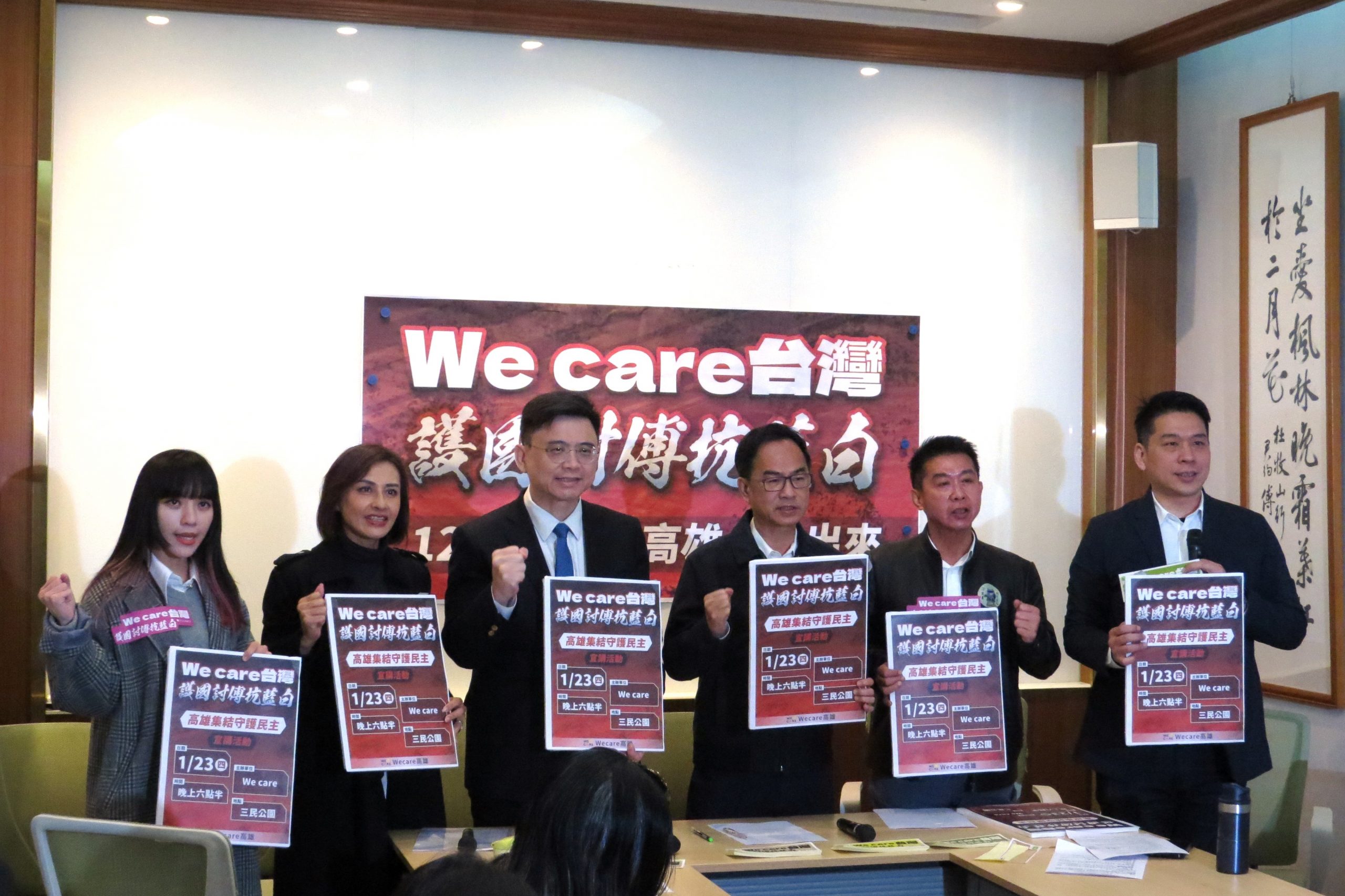 記者會最後,李柏毅表示將延續過去「罷免不適任市長」的行動能量,邀請高雄市民1月23日自由日站出來,共同參加「We care台灣·護國討傅抗藍白」宣講活動,當天也會發放活動貼紙,要號召全台民眾共同出聲抗議不適任立委,用行動捍衛台灣的民主、自由與尊嚴。