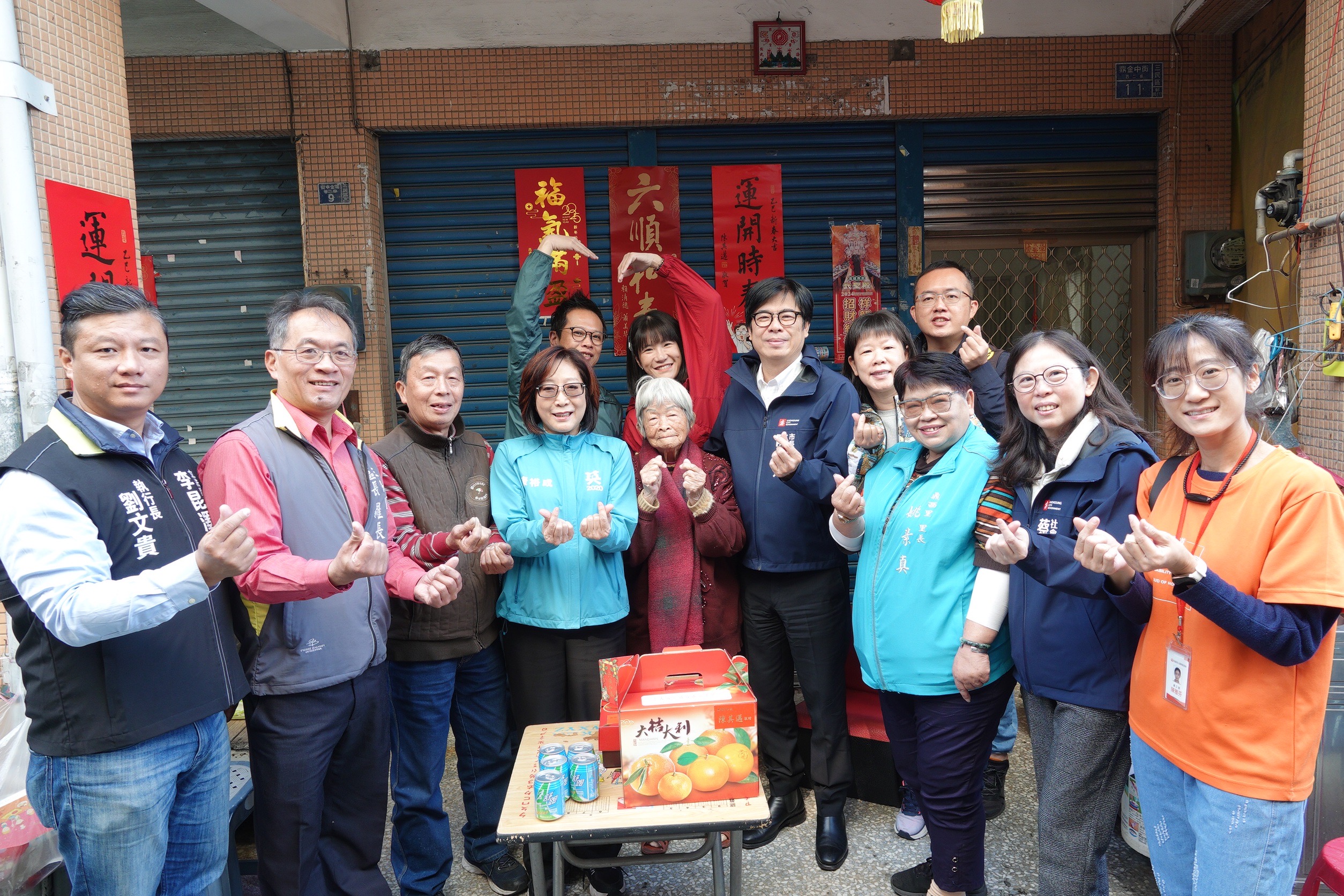 康議長帶著賴總統及今年自己設計的春聯送給劉陳阿嬤,她表示,隨著寒冬來臨,市府高度關注獨居長輩的健康安全,特別提醒長輩要加強保暖措施,避免因為低溫影響身體健康。為表關心,康議長與市長也一同送上年節禮盒、紅包,並準備暖心物資,其中包含水果、營養品、圍巾、刷毛保暖褲及暖暖包等物品,幫助長輩抵禦寒冷。
