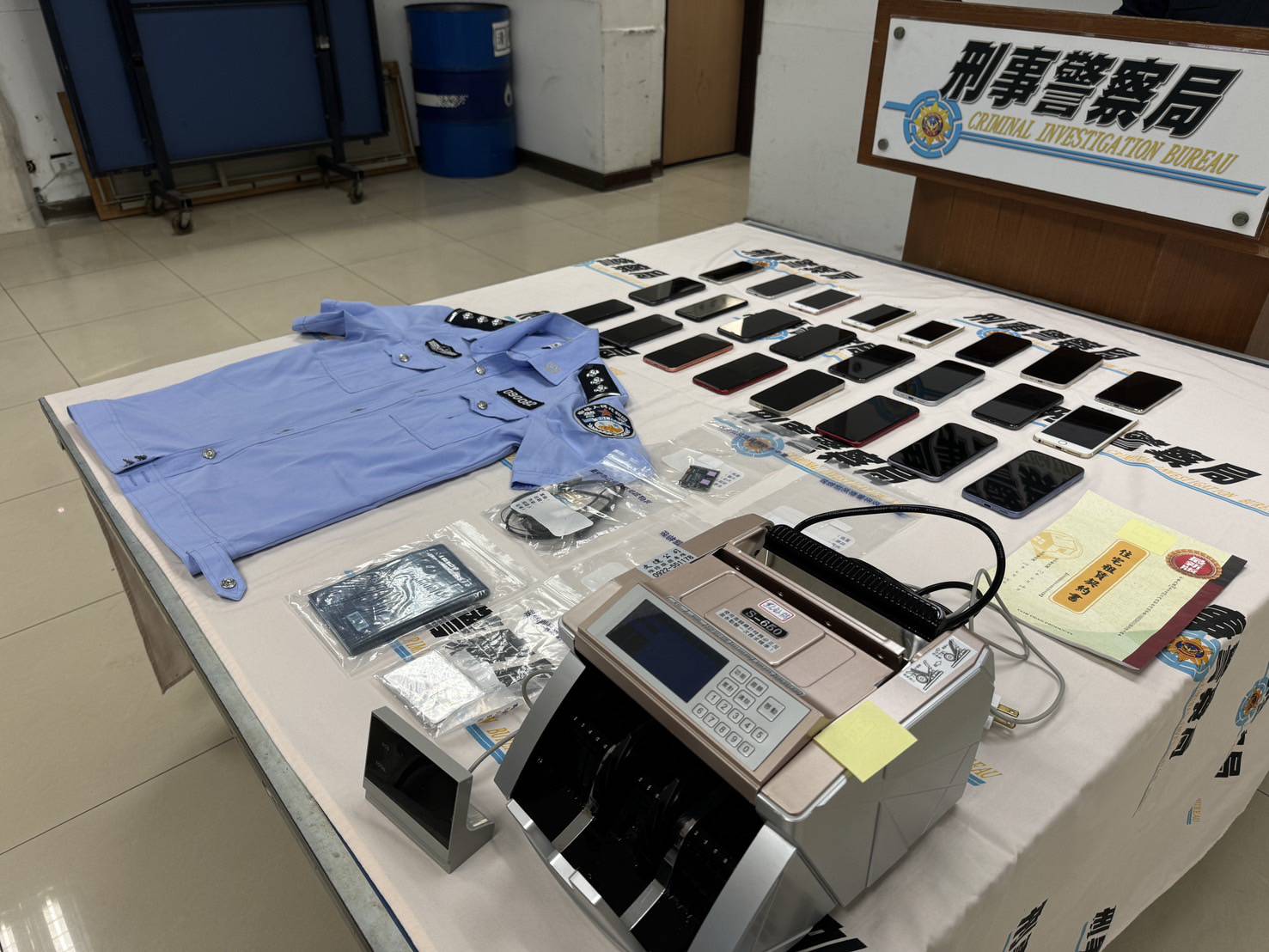【記者馬道明/綜合報導】刑事局南部詐欺偵查中心自113年間偵破詐欺集團情資持續溯源,鎖定多名詐團共犯以居家辦公方式藏身大樓租屋處,於113年12月間同步在臺中三處查緝犯嫌到案,查扣不法所得現金新臺幣(下同) 160萬2,400元及自小客車2輛(市價約150萬元)、手機26支、黑莓卡、針孔攝影機1台、點鈔機、假公安制服等。