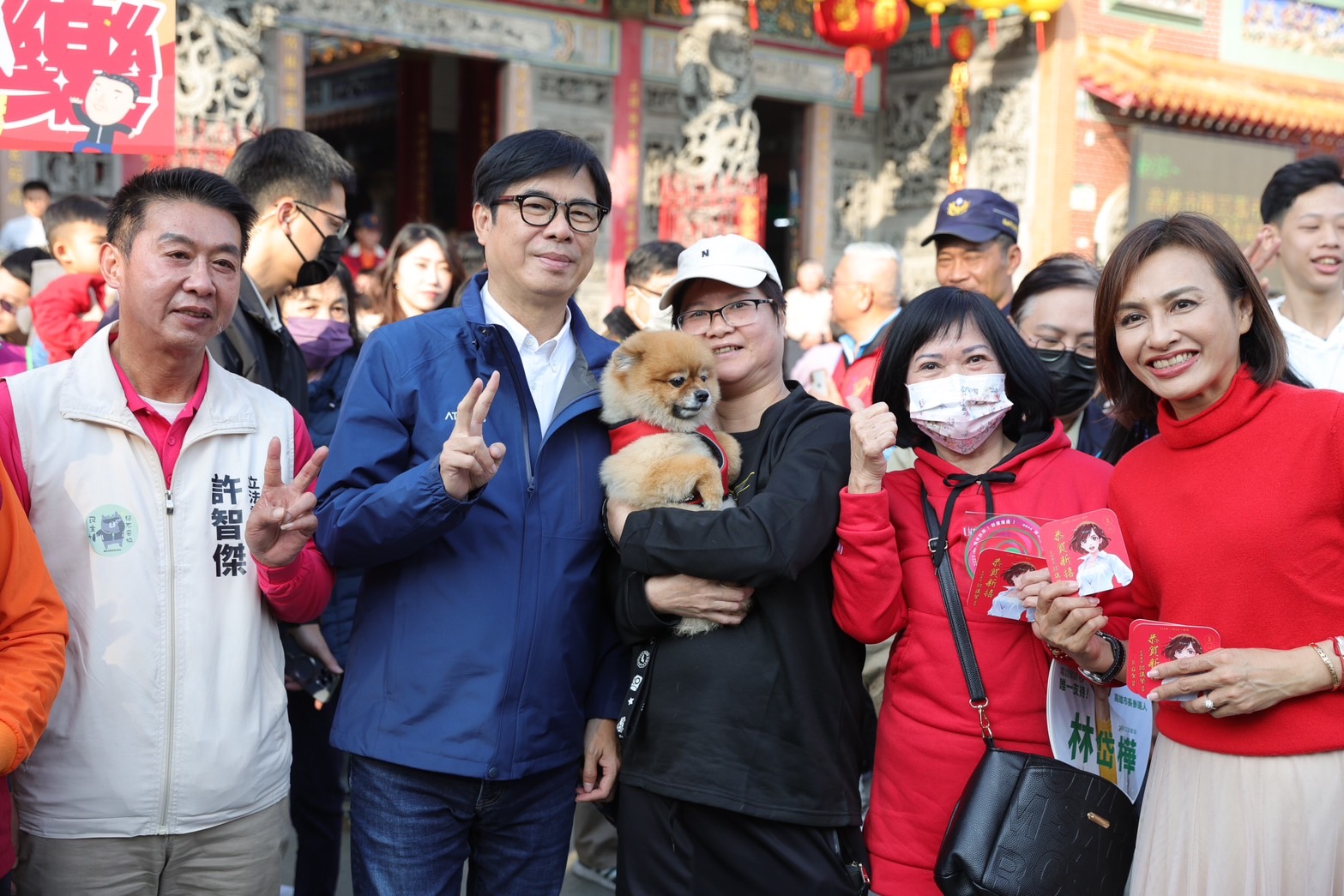 隨後,陳其邁走訪內門紫竹寺、南海紫竹寺及美濃天后宮,受到現場民眾熱情簇擁,等候領取開運小紅包的人潮滿滿,攜老扶幼前來沾染喜氣,人手一個個象徵吉祥好運的百步蛇小紅包,與市長合照、擊掌,甚至索取簽名,現場歡笑聲不斷,「新年快樂」、「恭喜發財」的祝福聲此起彼落,新春熱鬧氣息溢滿廟埕。
