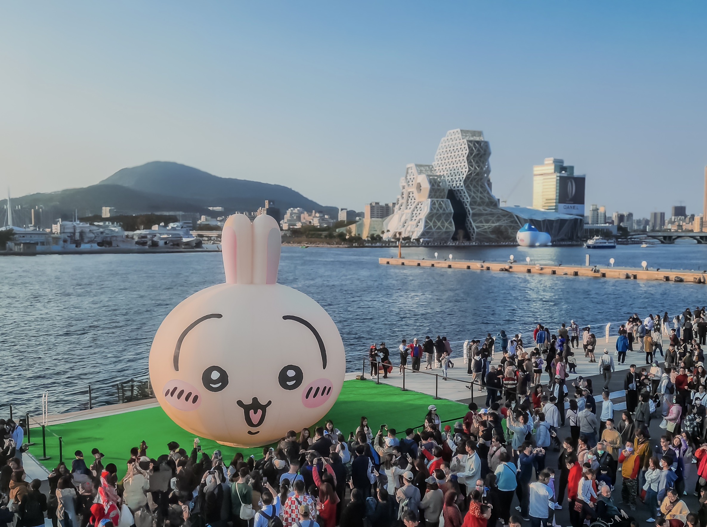 親子歡樂天堂的碼頭樂園,首次亮相的機械遊樂設施長長的排隊人潮,小朋友最愛的氣墊遊樂設施也人氣滿滿。今年高雄燈會邀請到「吉伊卡哇(chiikawa)」3位小可愛們蒞臨高雄,這也是「吉伊卡哇」首次以大型氣膜於戶外進行展示;夜晚還有以動畫歌曲《睡衣派對》及吉伊卡哇、小八貓及兔兔3隻小可愛的特徵製作而成的「舞吉派對」燈光展演,具視覺與聽覺的雙重饗宴,也是網友推薦必看節目。此外,市府同步推出「吉伊卡哇」主題列車,包括輕軌、渡輪及公車,要讓海內外旅客與小可愛們一同共遊高雄!