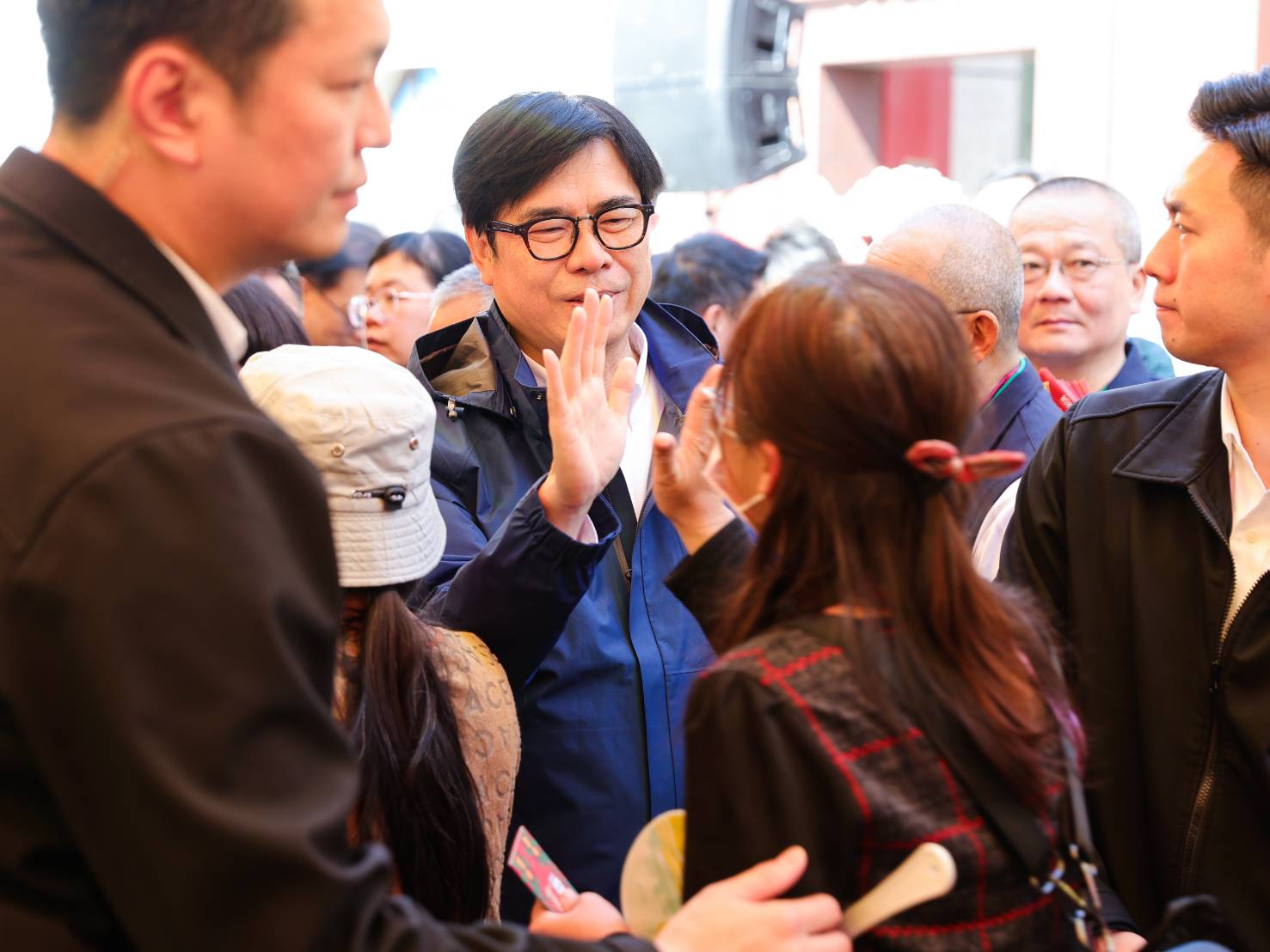 參香活動現場熱鬧滾滾,長長人龍依序從賴總統手中領取一元小福袋,並與陳其邁市長及多位民意代表擊掌,互道新年快樂,場面溫馨喜氣。