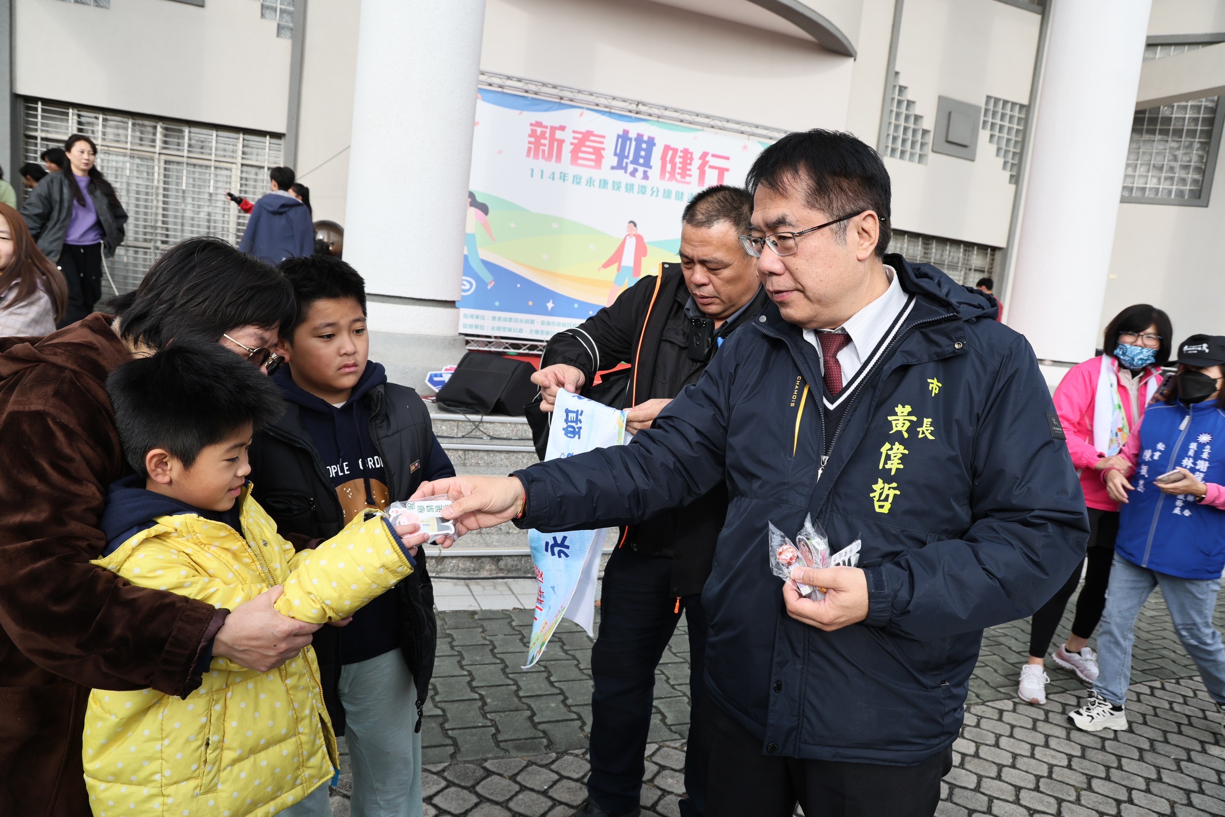 (記者李麗華台南報導)臺南永康蜈蜞潭分線休閒步道正式落成,並於今(9)日上午盛大舉行健走活動,市長黃偉哲親自出席,與農業部農田水利署嘉南管理處長王志誠、立委陳亭妃、林宜瑾、市議員黃肇輝、林燕祝、陳秋萍、朱正軒、林冠維等貴賓,共同見證地方建設完成,且現場鳴笛為所有參與健走的民眾加油打氣。
