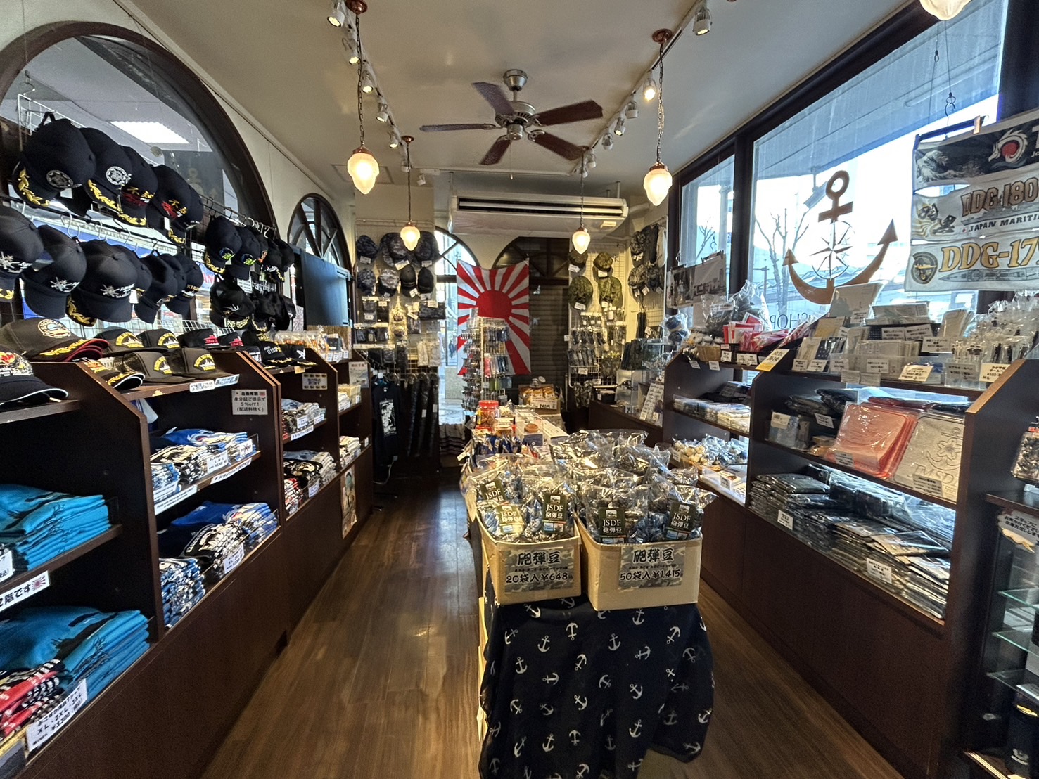 在MISAKA SHIPING PLAZA pop三笠ビル商店街內MILITARY SHOP YOKOSUKA三笠本店(有4層樓專門販售海上自衛隊的文創商品與食品)。(記者王清正攝)