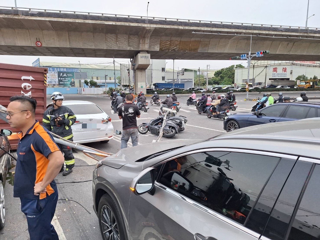 目前現場尚未排除,林園分局已派員在場疏導交通,並通報警廣提醒用路人改道。