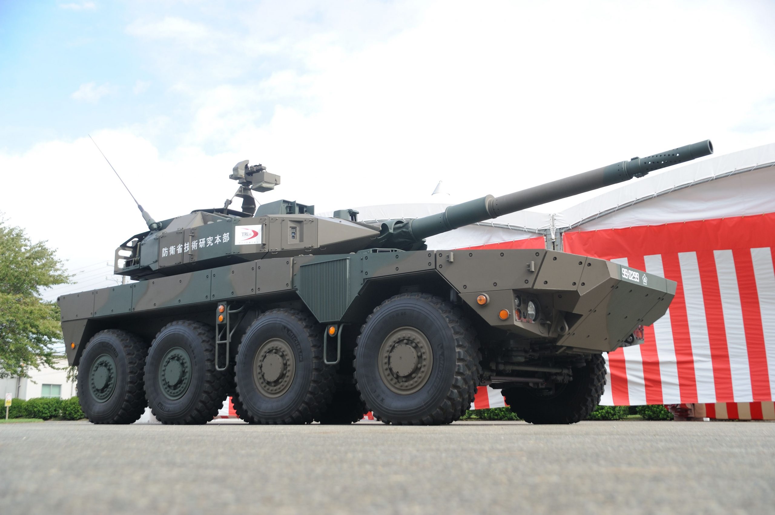 在參考了M1128的先例後,日本決定於2007年著手進行輪型坦克的研發。先前日本已完成10式主戰坦克的研發與量產,於是將10式坦克的相關技術,比如射控系統、制退緩衝技術移植到輪型坦克,以加快開發進度。