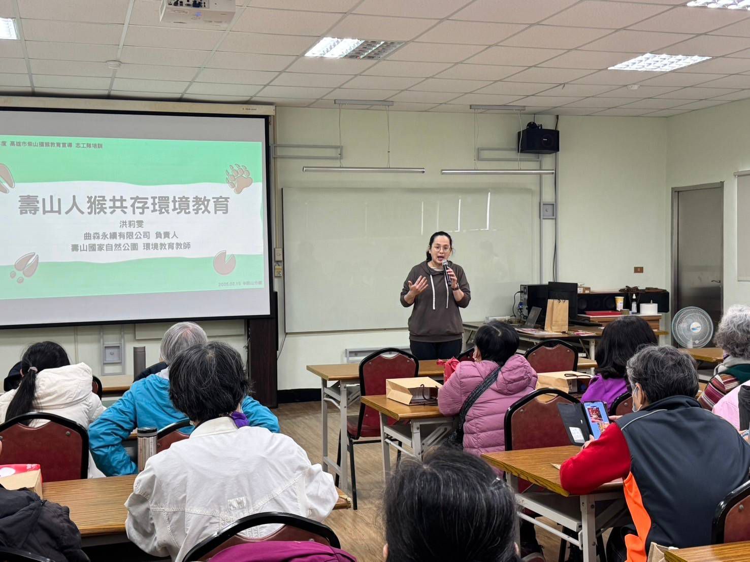 【記者李麗華/高雄報導】為改善柴山地區的人猴衝突,市府農業局持續結合鼓山區在地力量,經由鼓山區「龍井幸福樂學社區發展協會」的穿針引線下,召募到18名當地熱心里民投入志工行列,參與農業局於2月15日辦理的「高雄市柴山獼猴教育宣導志工隊培訓」,經培訓的志工後續也將發揮「在地巡守、即時守護」力量,期能朝向人猴無礙新關係努力。