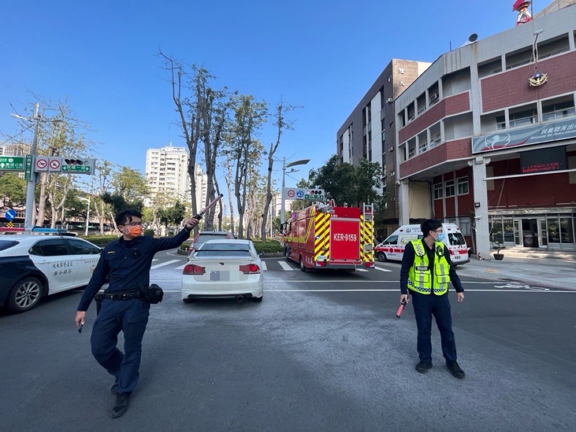 本案所內同仁一發現車禍,全員便立即主動前往協助、自主分工,現場濃煙密布,同仁為避免發生爆炸、傷害周遭民眾,立即交通管制、維護現場安全,並使用滅火器避免火勢產生,同時迅速將車上身體不適的余男馬上自車上攙扶至所內休息,遠離冒煙的車輛。全案經民權所全員出動,即刻救援,成功避免人員傷亡,所有民眾皆平安、未受傷。