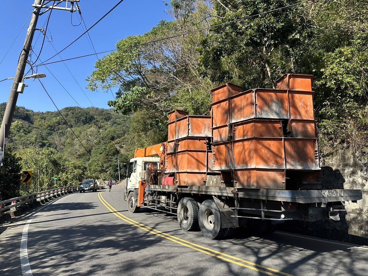型拖車行經台20線75.5公里處,不慎將電纜線勾落下垂路面,適逢連續假期,往來車輛眾多影響交通,警方到場交通管制。