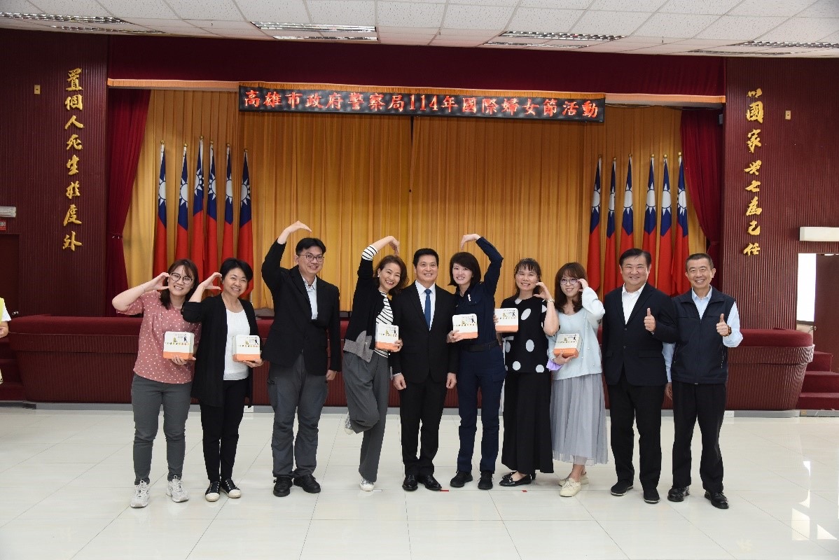 【記者李麗華/高雄報導】為歡慶3月8日國際婦女節,高雄市警局於今(7)日特別舉辦慶祝活動,局長林炎田於3樓大禮堂,向全體女性同仁致謝,並親贈精緻的手工餅乾禮盒,感謝她們在警政工作上的辛勞與奉獻。現場溫馨熱鬧,不僅展現警局對女性同仁的重視,也象徵對性別平權的支持。