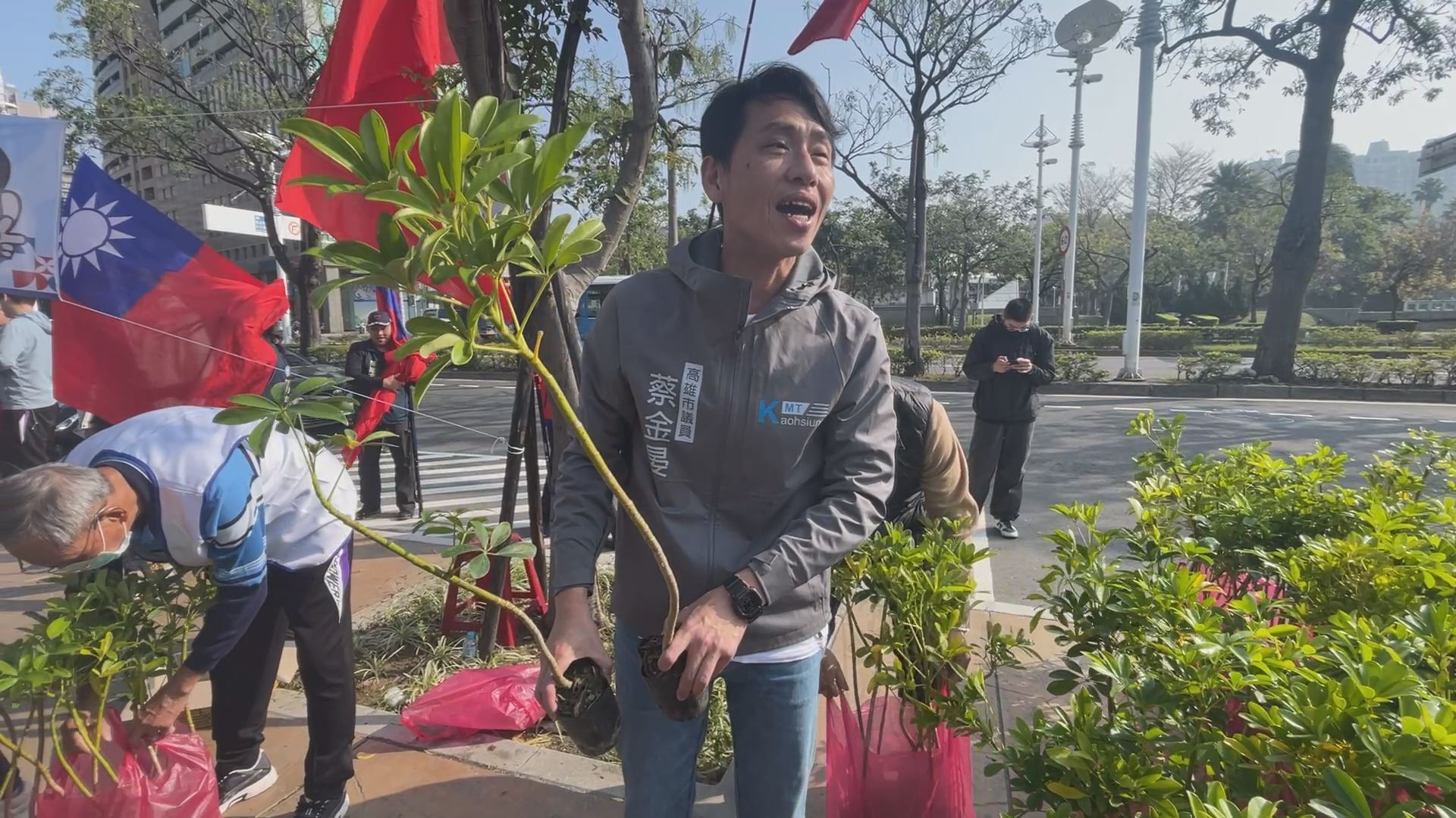 國民黨高市黨部集結各級民代,為紀念國父孫中山暨植樹節發送小樹苗活動,從中山路出發點準備健走出發到復興路,象徵國父孫中山「中山復興」精神。(記者李佳龍/攝)
