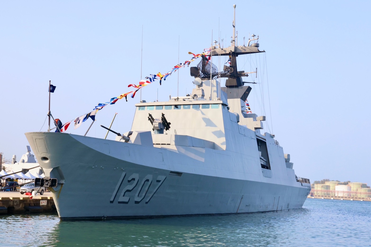 海軍「敦睦遠航訓練支隊」抵達臺南安平商港,展開國內航訓的第二站。(記者翻攝)