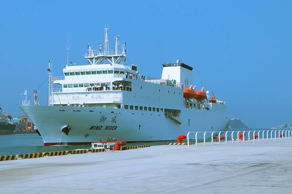 未來御風輪將以高雄為母港,各航次訓練學生將從高雄港登船、離港,參與海上實習課程。圖為御風輪今(10)返抵高雄港停靠17號碼頭,隨即展開補給工作。高雄港17號碼頭即為一般民眾熟知的旅運中心。