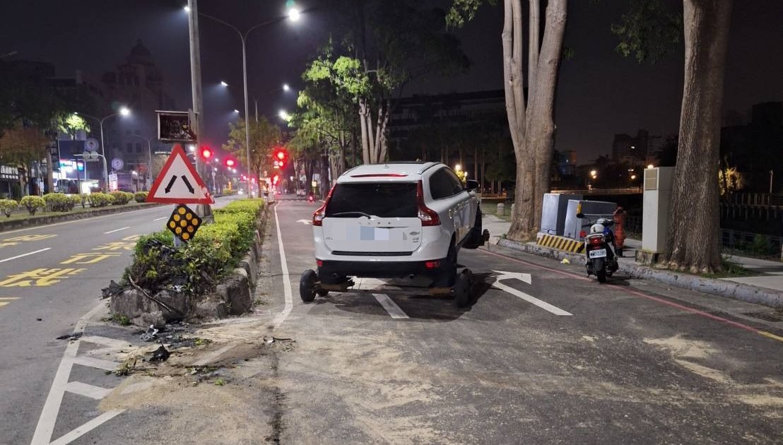 自小客車自撞。(高雄市左營警分局提供)