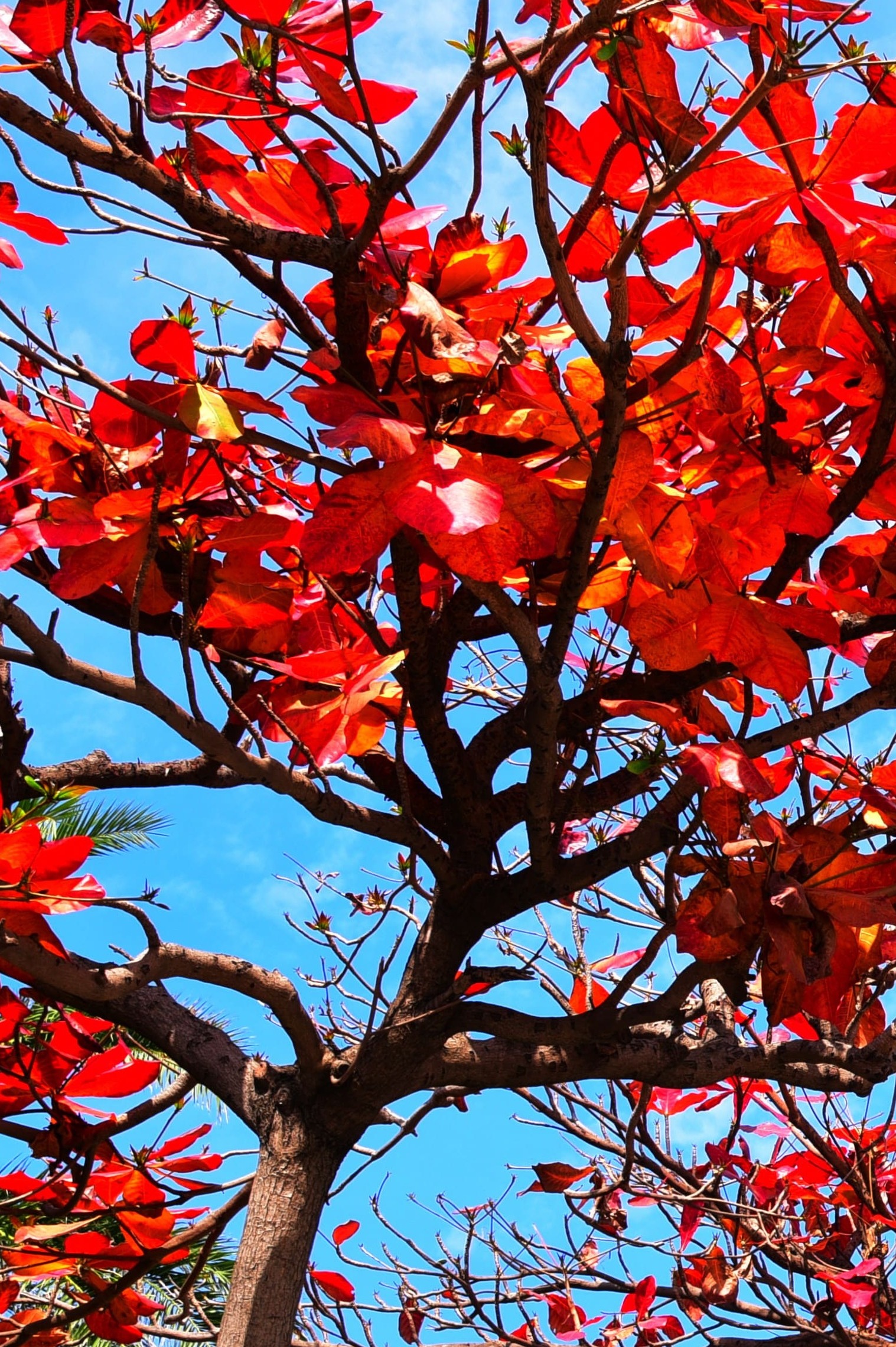 工務局表示,欖仁樹原生於熱帶地區,是使君子科欖仁屬的落葉性觀賞喬木,因果實狀似橄欖核而得名,其葉片隨季節的變換而變色,隨著溫度降低,樹葉會逐漸轉為黃色或紅色,氣溫回升後又開始萌發綠色的新梢,由此可感受季節的變化。此時欖仁樹滿樹紅葉,在陽光下閃爍著耀眼光彩,為高雄市景象增添了動人色彩。