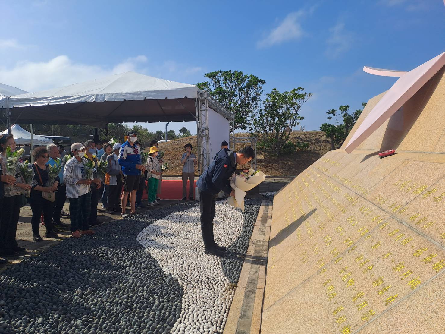 高雄市政府郭添貴秘書長、高雄市女性權益促進會許乃丹副理事長,分別致詞向高中六號事件罹難者及家屬代表致意;呂湘婷再以經典歌曲《祝你幸福》及《掌聲響起》,為每位在加工區默默付出青春的勞工送上祝福與掌聲,並由郭添貴秘書長、許乃丹副理事長、勞工局江健興局長、旗津區張淑貞區長、簡煥宗議員與各界貴賓及家屬代表,在紀念碑前共同獻上百合花行禮追思。