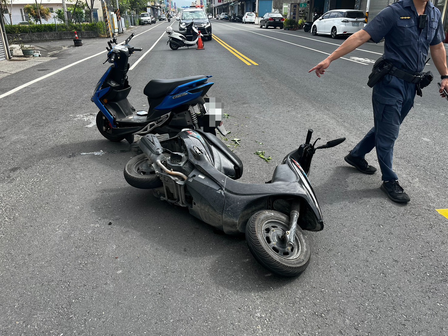 員警到場後為防止其他危害發生,立即在現場協助疏導交通,以維護在場人員及用路人的安全,後續由交通分隊現場道路測繪後,排除事故車輛;經對宋、陳雙方施以酒測,酒測值均為0,三人送醫治療後均無大礙。