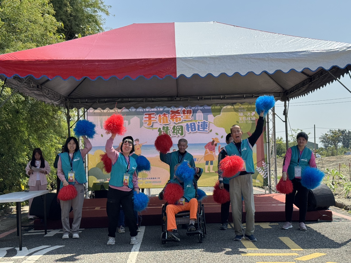 臺南市政府今(22)日攜手林業及自然保育署嘉義分署,於臺南市南區綠9綠地共同舉辦「手植希望 綠網相連」植樹活動,活動開始由龍崗國小鼓藝隊熱鬧揭開序幕,並邀請樂憨之家帶來精彩的波浪舞表演,炒熱現場氣氛。
