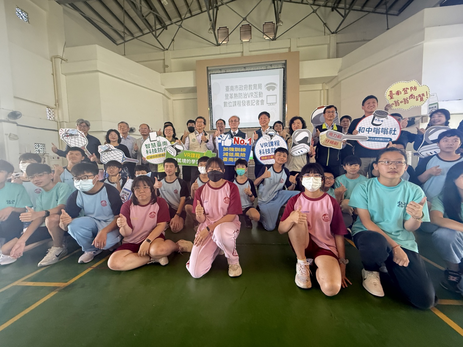 【記者蘇志明/臺南報導】臺南市政府教育局結合虛擬實境(VR)技術,開發出創新的登革熱防治互動數位課程,將學生化身為「防疫小尖兵」。透過這套系統,學生們能以遊戲的方式深入學習正確的登革熱防疫知識。教育局今(26)日在安南區和順國中舉辦「登革熱防治VR互動數位課程發表記者會」。市府方進呈秘書長在教育局鄭新輝局長的陪同下,代表臺南市長黃偉哲出席,並與和順國中防蚊實驗社團的學生共同體驗這項嶄新的VR課程,展現市府對防疫教育的重視與創新。