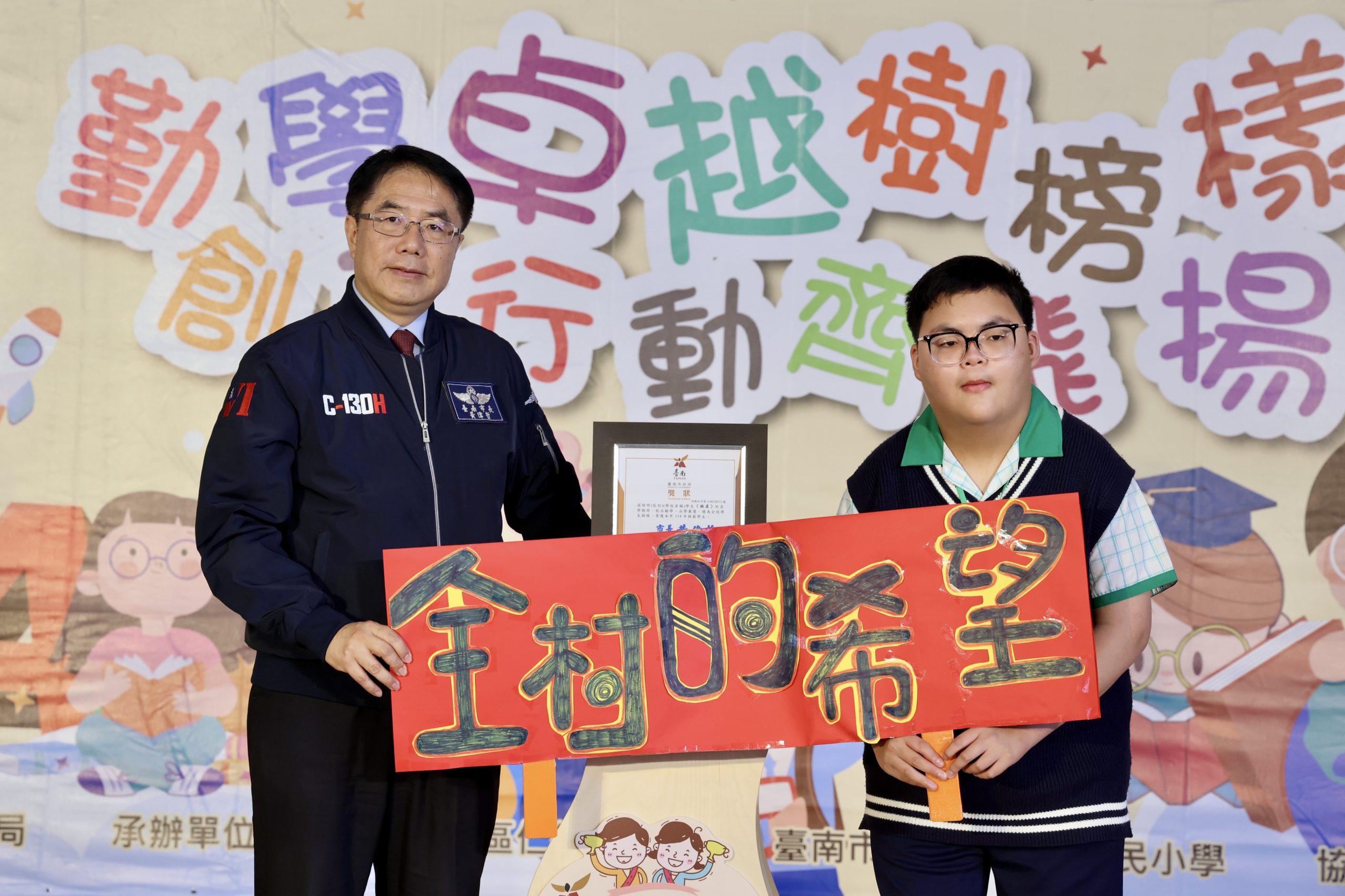 黃偉哲表示每年畢業季都會頒發市長獎,以肯定學生在國小、國中或高中的學習成果。而模範學生獎是更具特殊意義的,因為這不僅是學業成就的肯定,更是全方位綜合評選的榮譽,代表學生在品德、學業、才藝及服務等方面皆表現優異,是班級、學校乃至全市的楷模。他強調,每位模範學生不僅是家長呵護培育的珍貴寶貝,更是臺南市未來的希望。