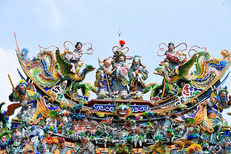 有別於傳統剪黏將陶瓷或玻璃剪成碎片後黏在灰泥上,陳三火運用敲擊技法,以花瓶酒甕、陶罐瓷器等敲破後的碎片為素材,獨闢蹊徑且兼具環保,任何器皿到了他手中,總能化腐朽為神奇地成為藝術品。陳三火表示,敲與剪不同,剪是照步來,敲是隨緣,完全依敲打後破碎的形狀與曲線,拼貼在人物的身體、四肢、衣飾或適合的位置,順其自然,由形入意。