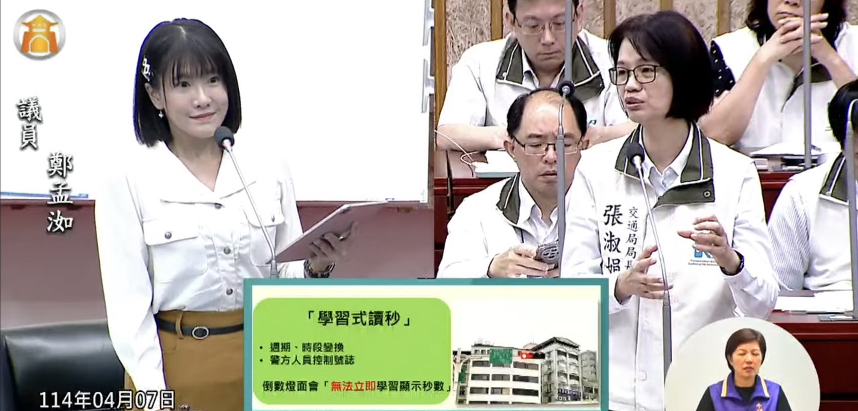 鄭孟洳於交通部門業務質詢指出,交通局的「學習式紅燈倒數」號誌形同交通陷阱。(記者翻攝)