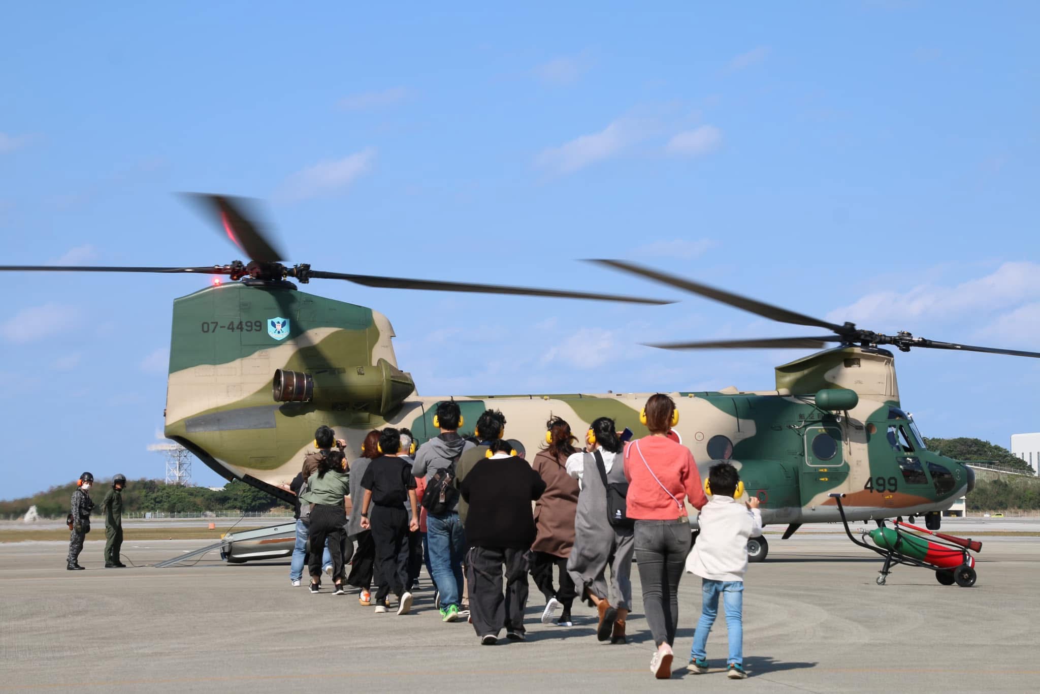 緊急事態發生時與那國島的居民搭乘駐防沖繩那霸的航空自衛隊的CH-47重型運輸直升機前往本島避難。(王清正攝)