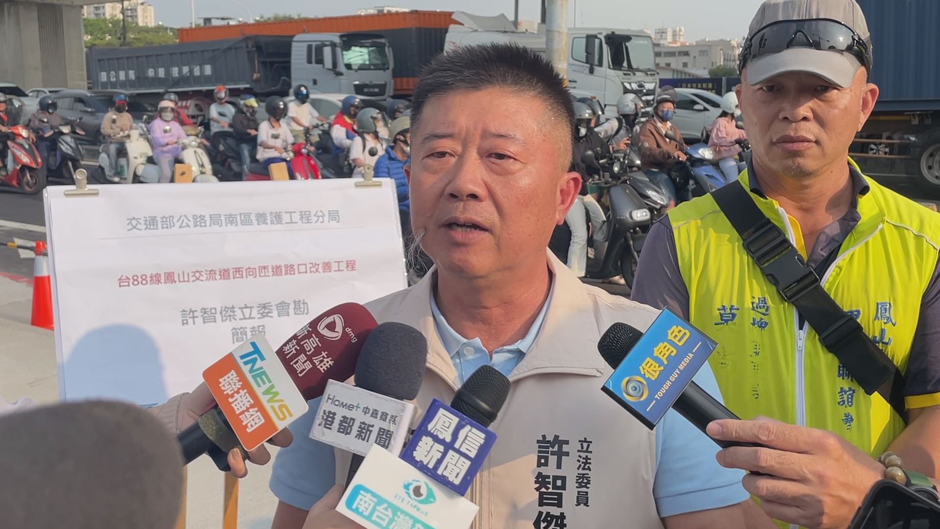 【記者李佳龍/高雄報導】長期困擾南高雄民眾的88快速道路塞車問題,終於有解!鳳山西向匝道確定將進行拓寬工程,預計明年春節完工。立委許智傑表示,感謝公路局重視在地聲音,將有效改善塞車回堵狀況。